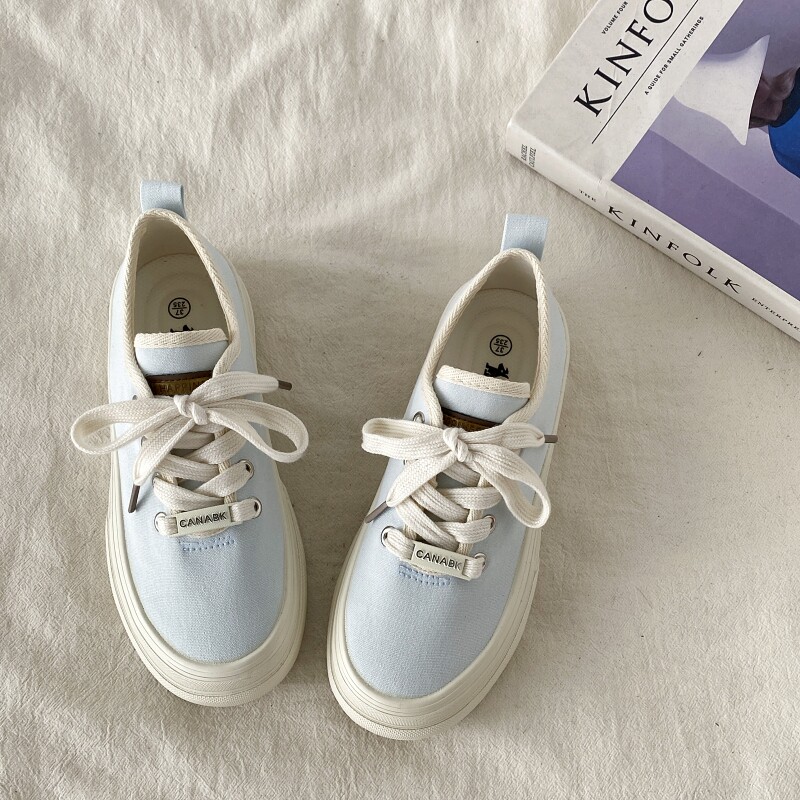喜叔浅蓝色帆布鞋女2025新款夏季薄款透气女鞋小众厚底休闲板鞋子