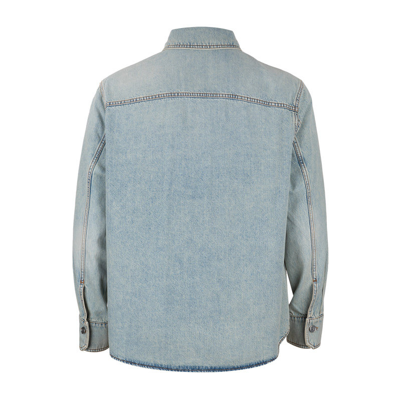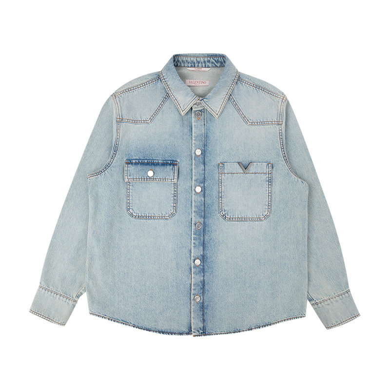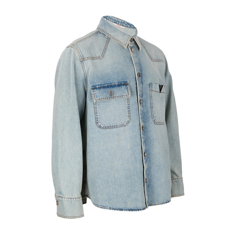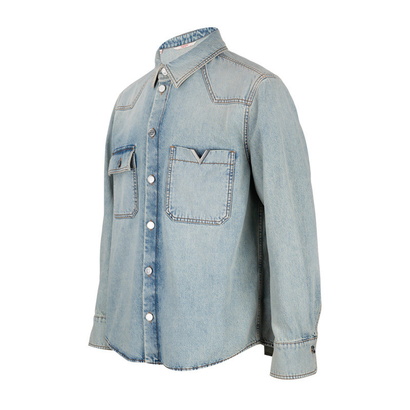Valentino/华伦天奴男士水洗前口袋纽扣翻领长袖牛仔衬衫男秋冬