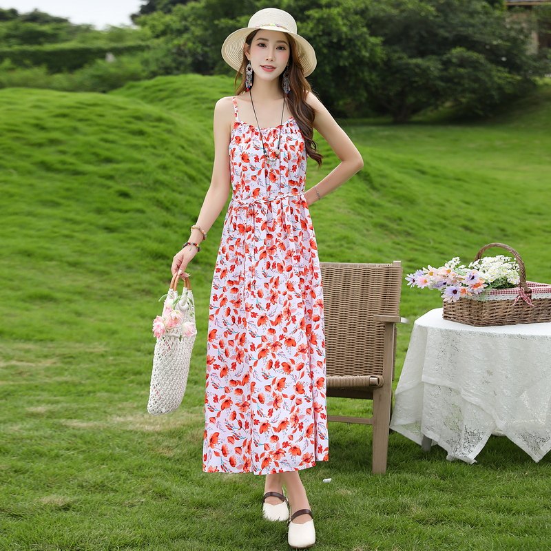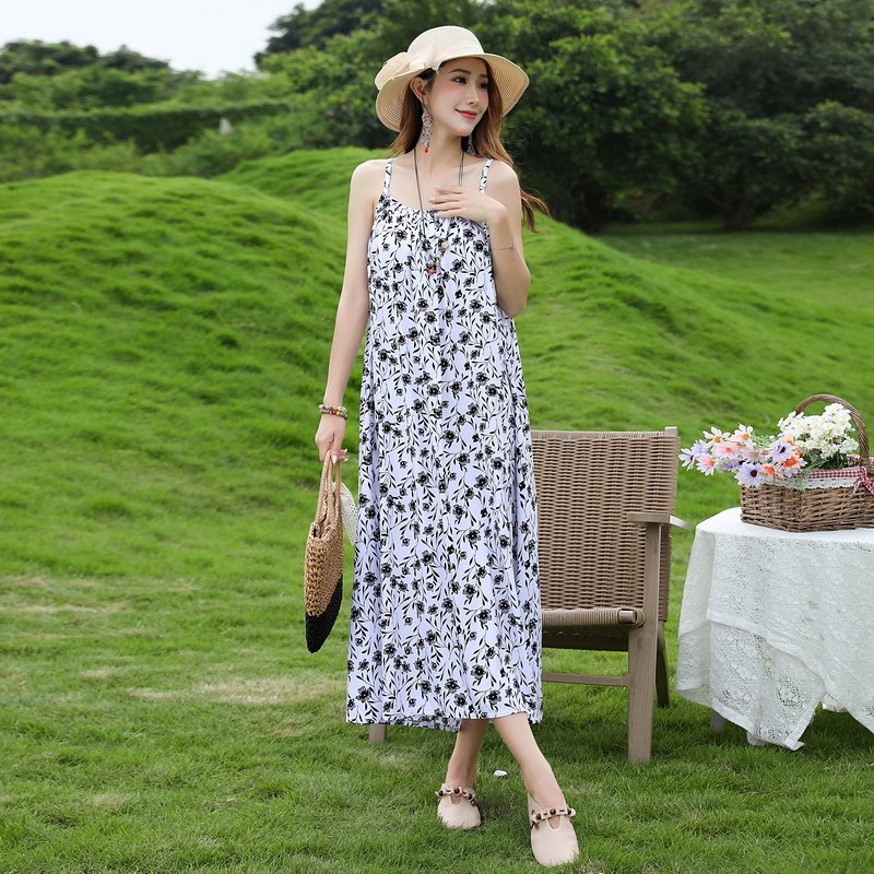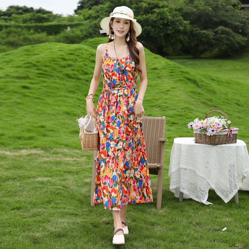 2026新款夏季无袖吊带棉绸连衣裙女大码胖mm碎花长裙气质妈妈裙子