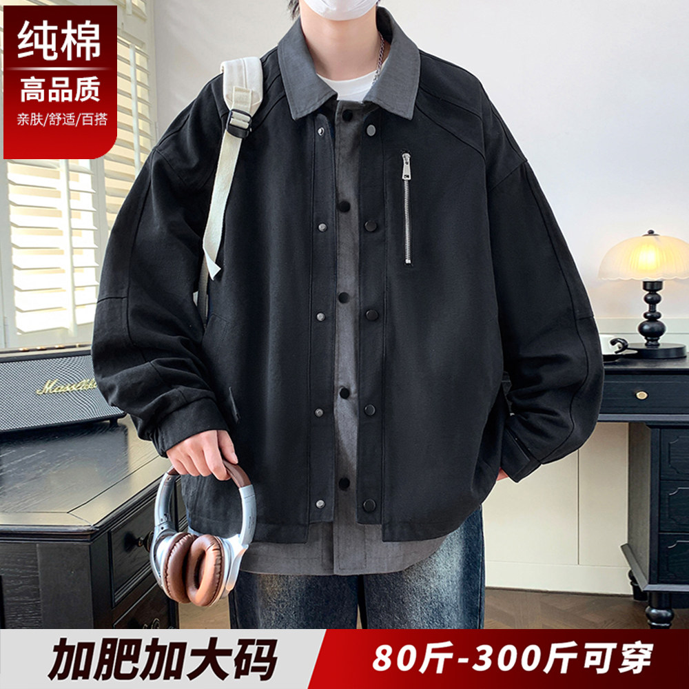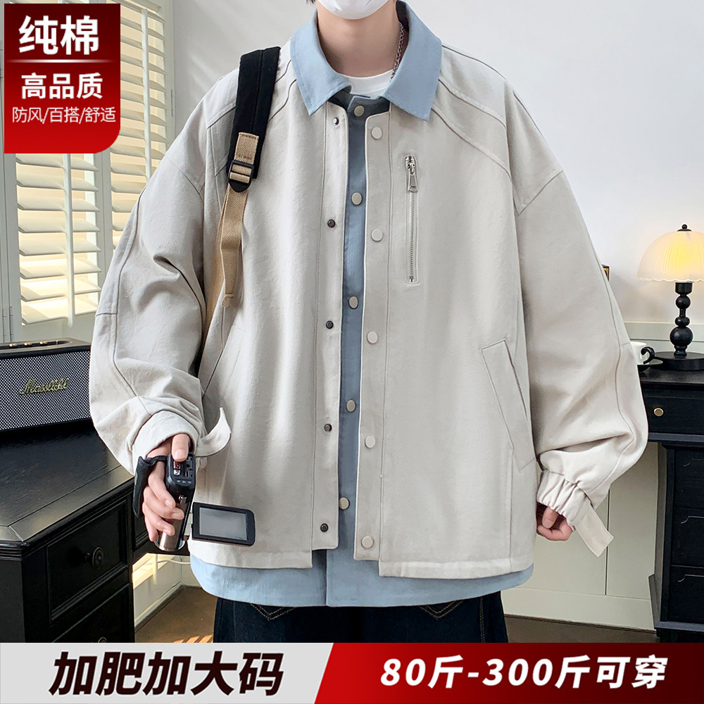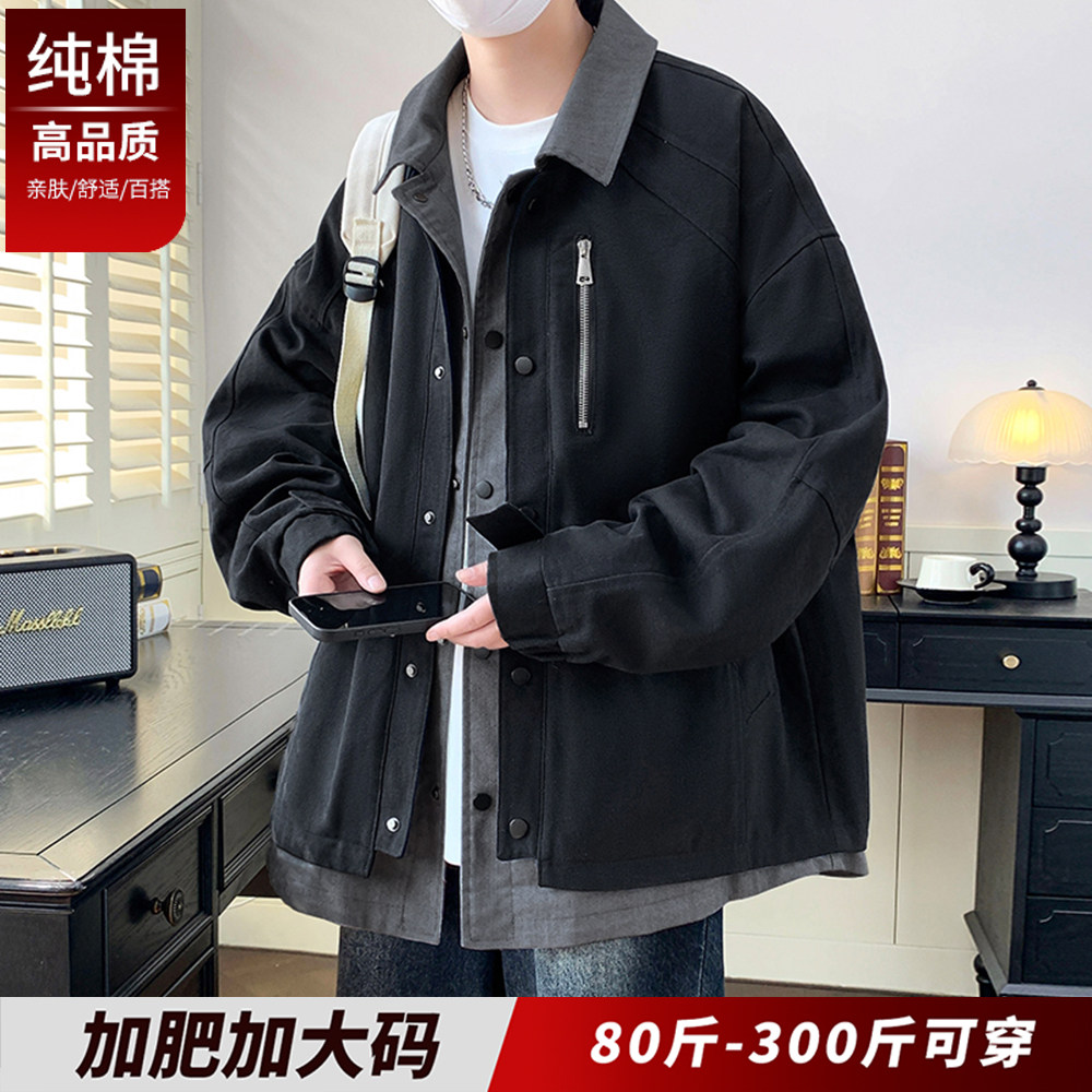 假两件男士春季外套男款高级感纯棉重磅夹克胖子宽松大码男装春装