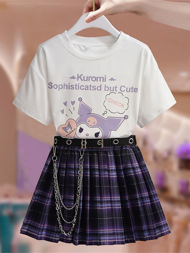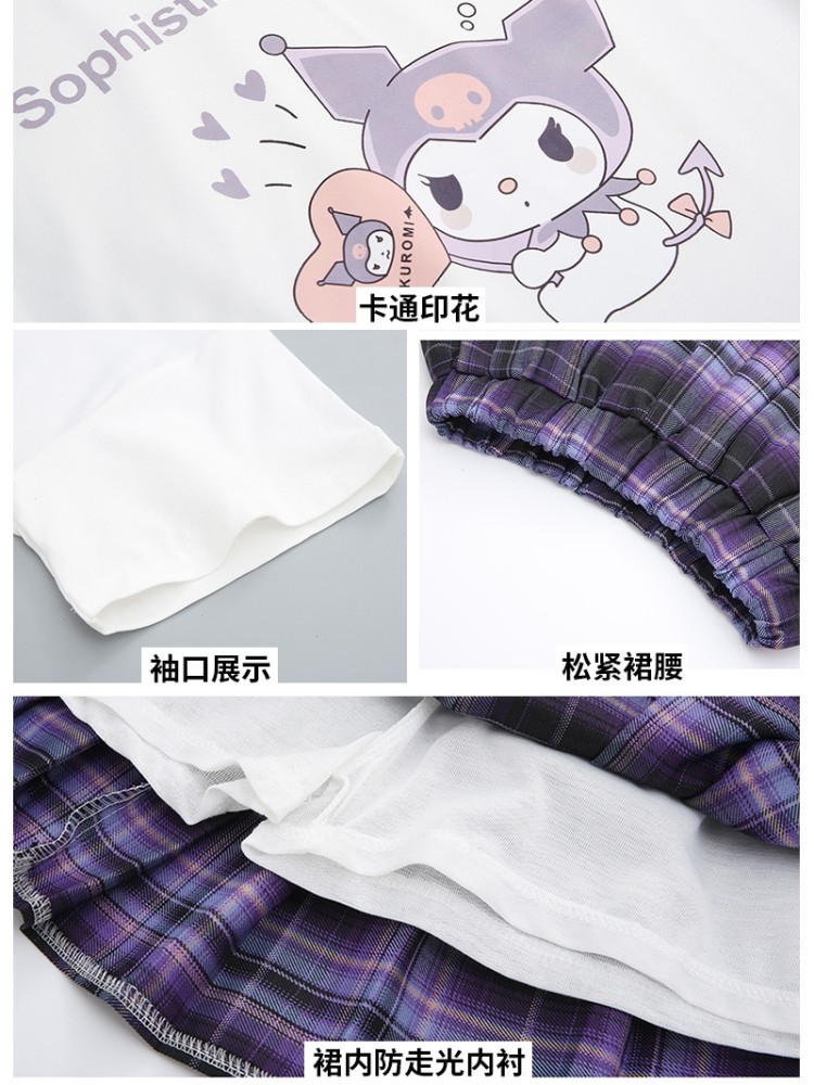 库洛米裙子女童夏装学院jk百褶套装洋气7儿童短袖T恤夏季纯棉衣服