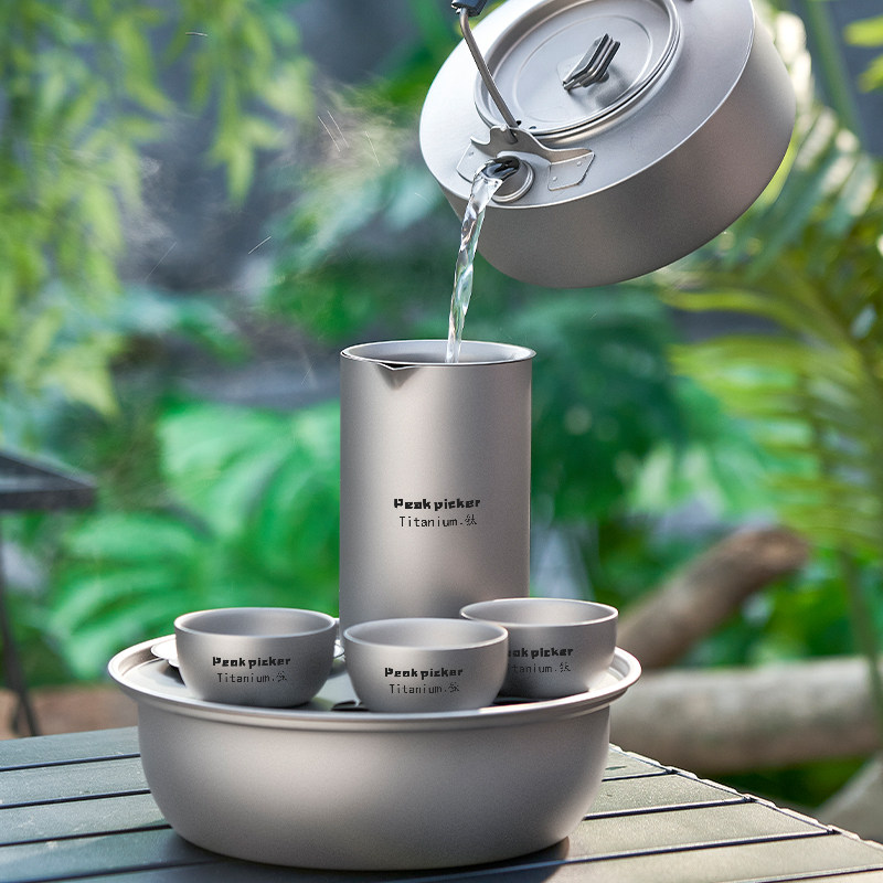 便携式纯钛高级旅行茶具套装泡茶器新款户外露营钛合金快客杯茶壶