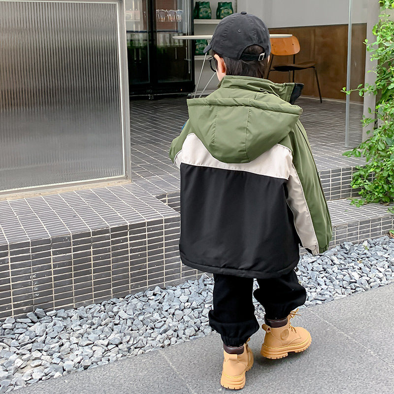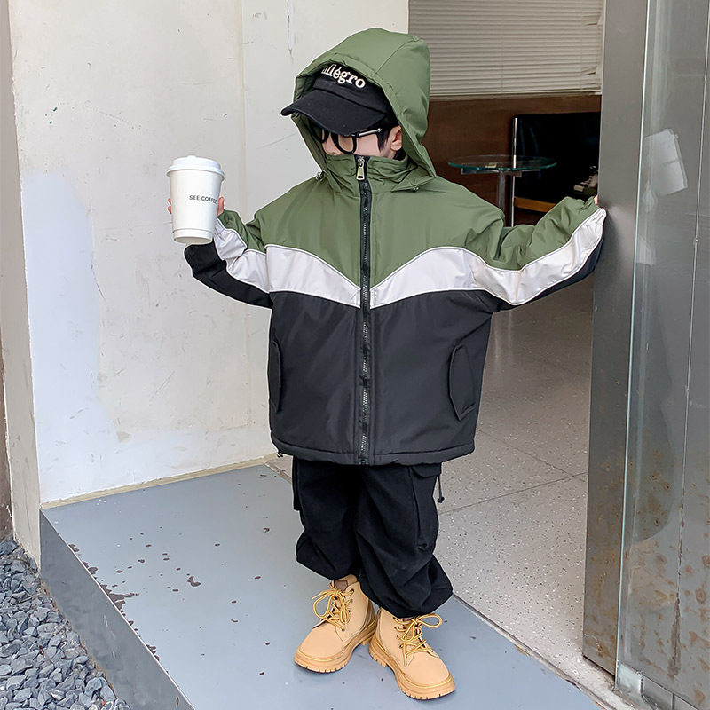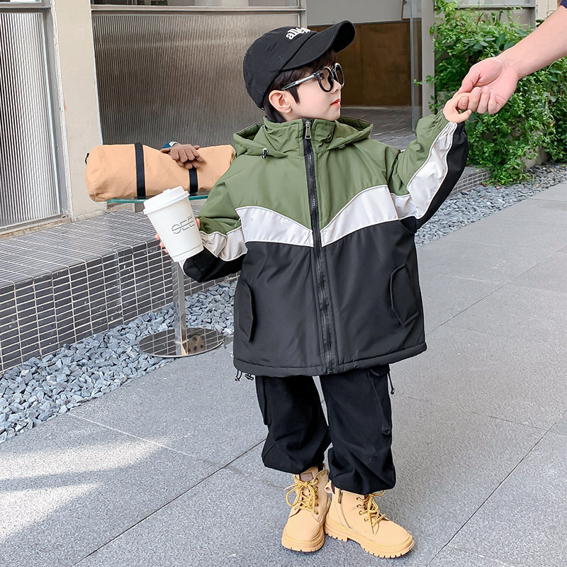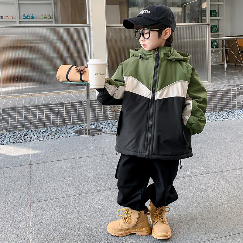 男童冬装外套2026新款儿童冲锋衣秋冬季夹棉男孩加厚连帽炸街上衣