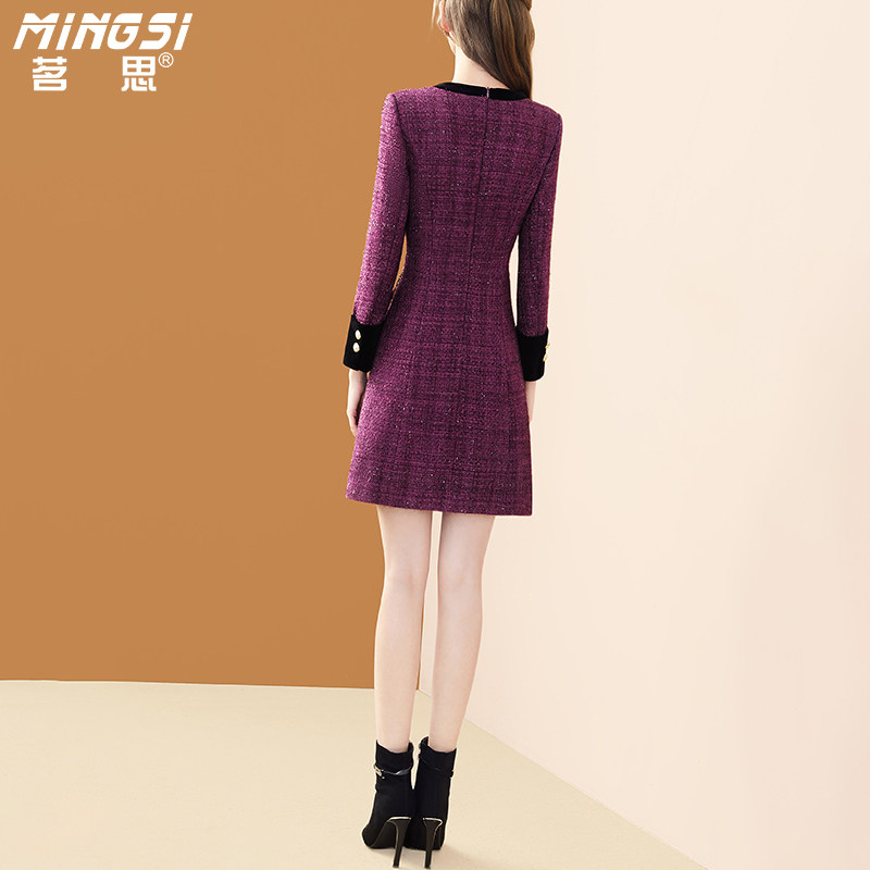 茗思名媛气质小香风连衣裙女2026春季新款小个子长袖修身显瘦裙子