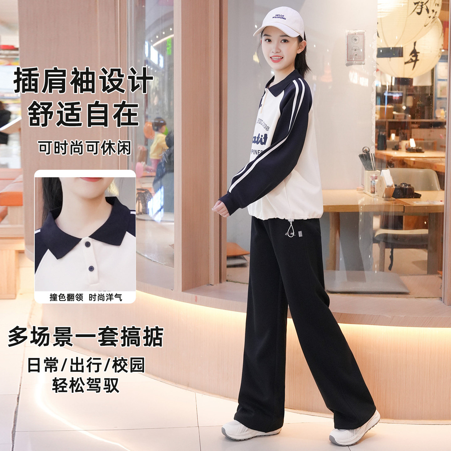 女大童春秋套装2026新款青少年初高中生女孩时尚休闲卫衣长裤套装