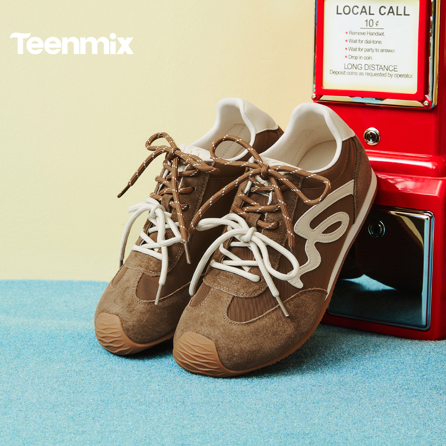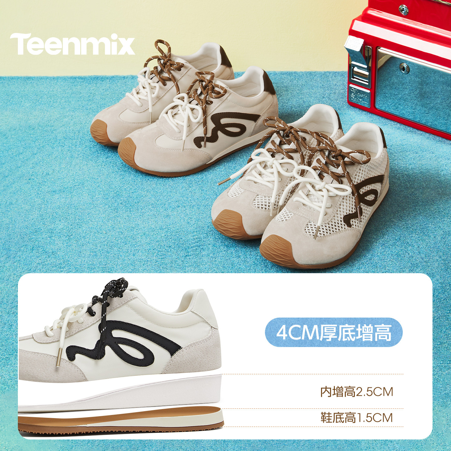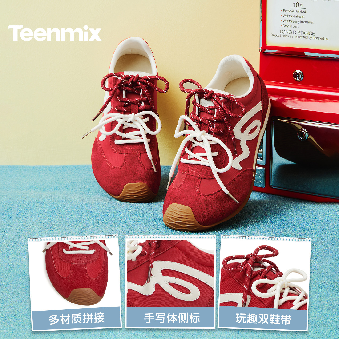 天美意内增高厚底复古红色阿甘德训鞋女2026春新款软底休闲运动鞋
