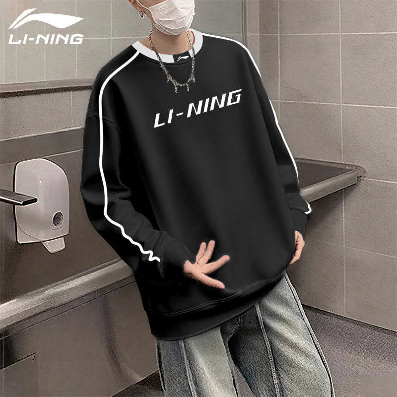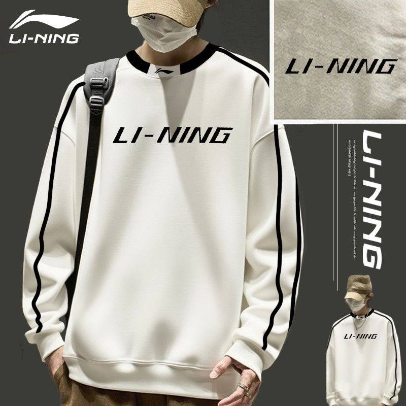 李宁白色加绒卫衣男士秋冬季新款圆领青少年保暖帽衫加厚运动外套