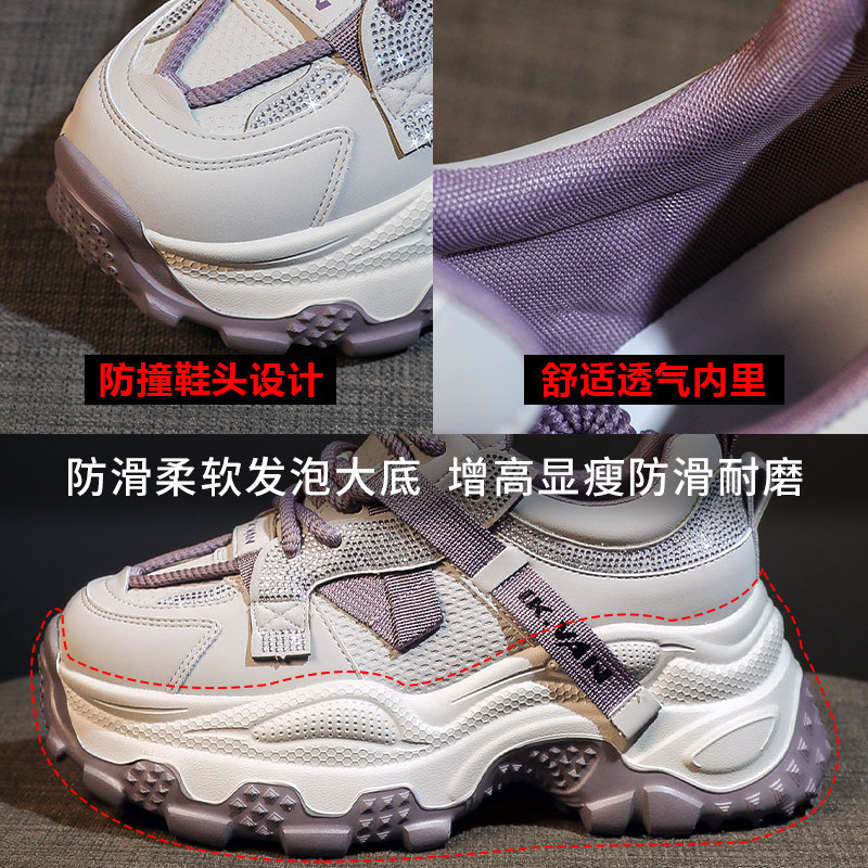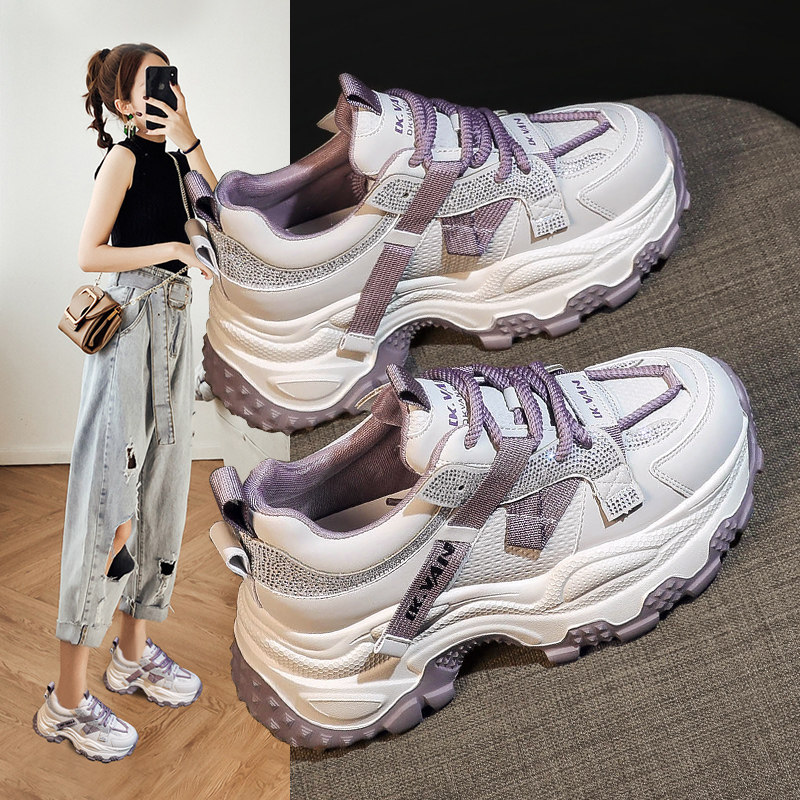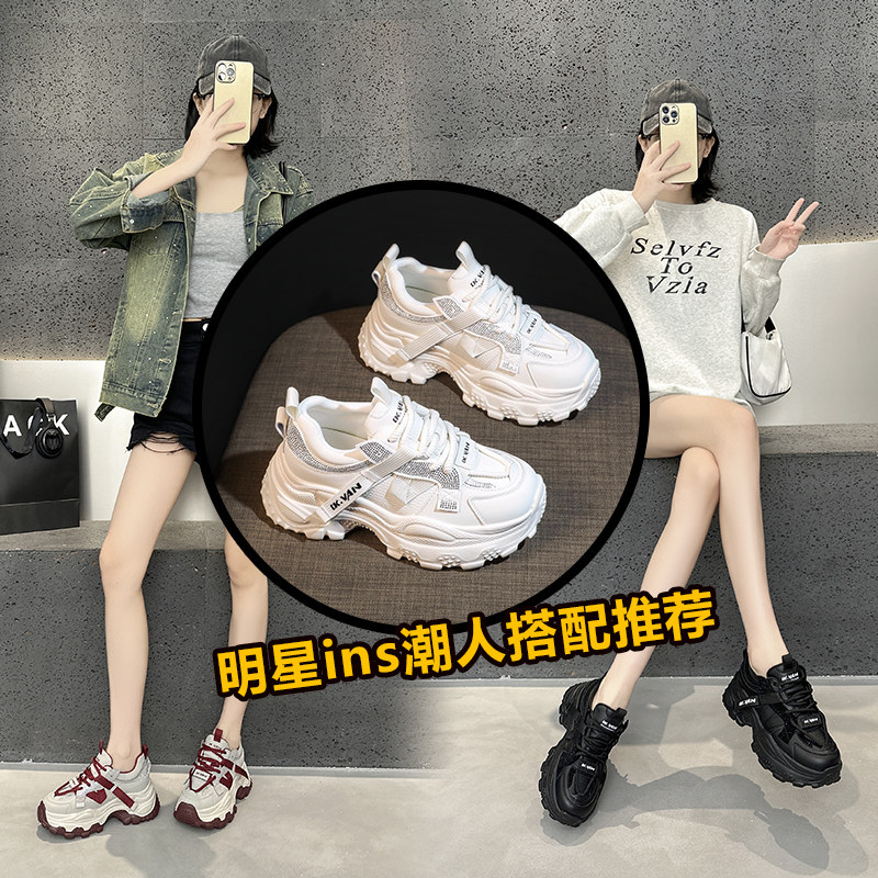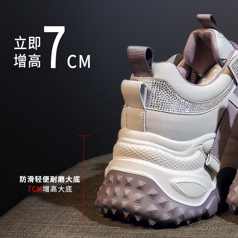厚底小白鞋女2026年春季超火新款透气真皮松糕休闲内增高老爹鞋子