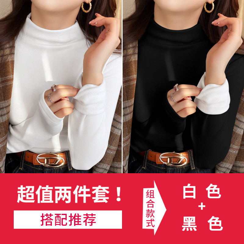 复合一体绒加绒加厚半高领打底衫女秋冬黑色内搭高级感可外穿新款
