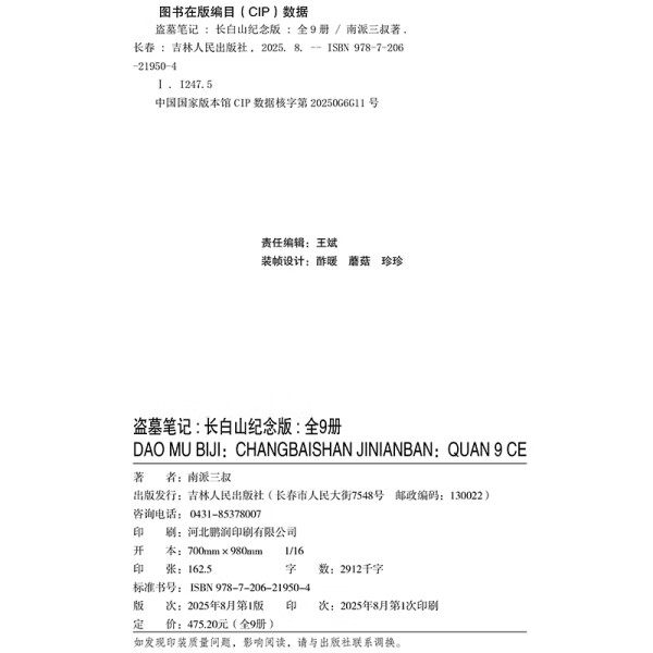 盗墓笔记(长白山纪念版)(全9册) 飞机盒发货 刷边版礼盒装 南派三叔【飘雪书法书签+青铜主题纪念明信片+铁三角透卡+小卡】