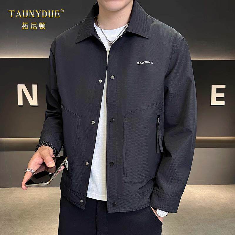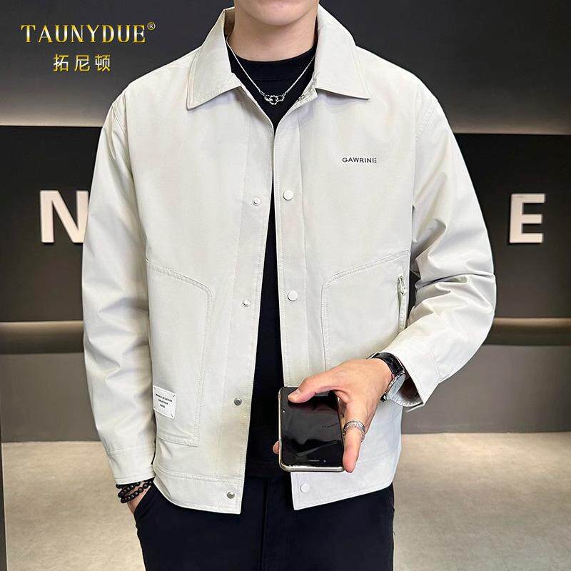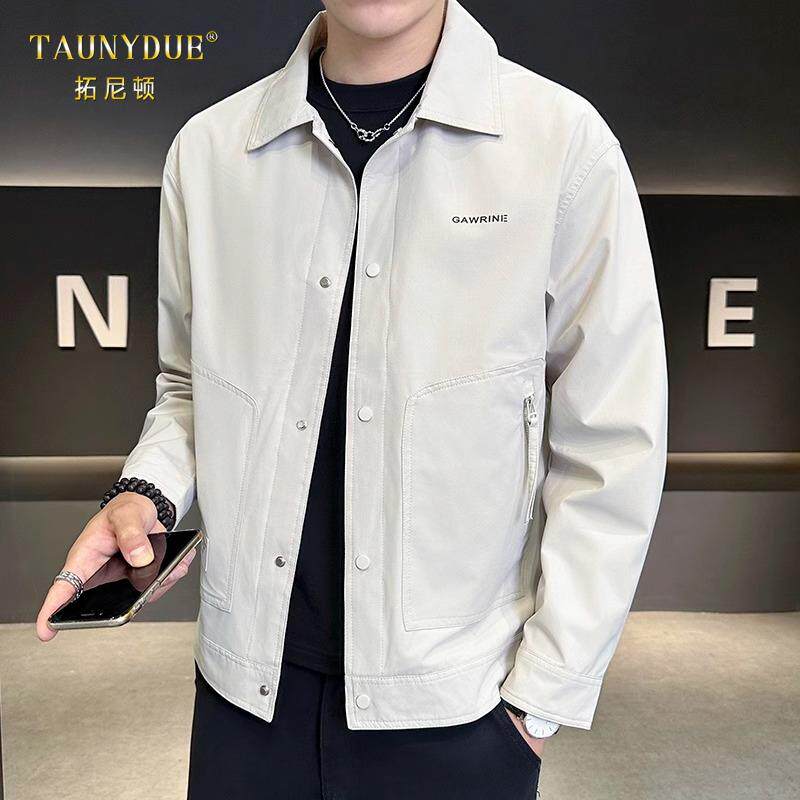 修身翻领夹克外套男士春装2025新款短款浅色薄款上衣春秋褂子男款