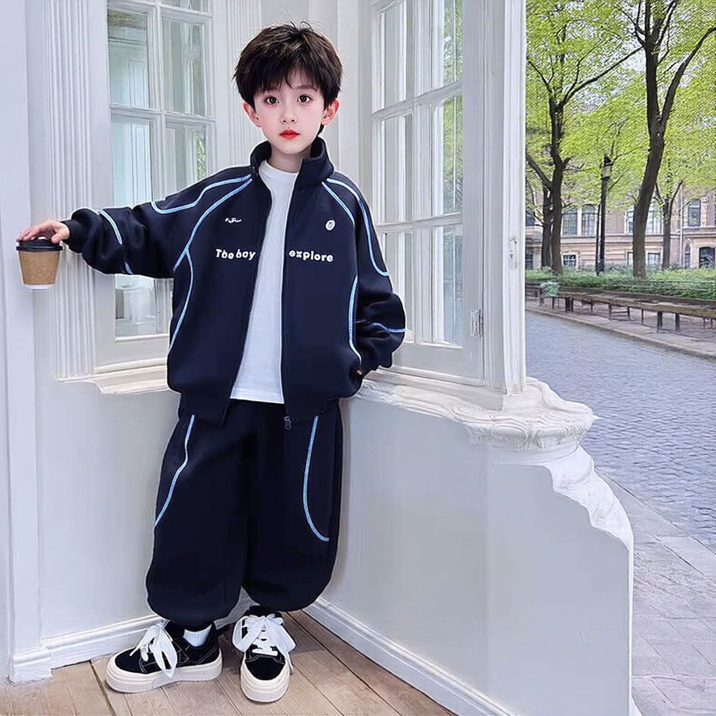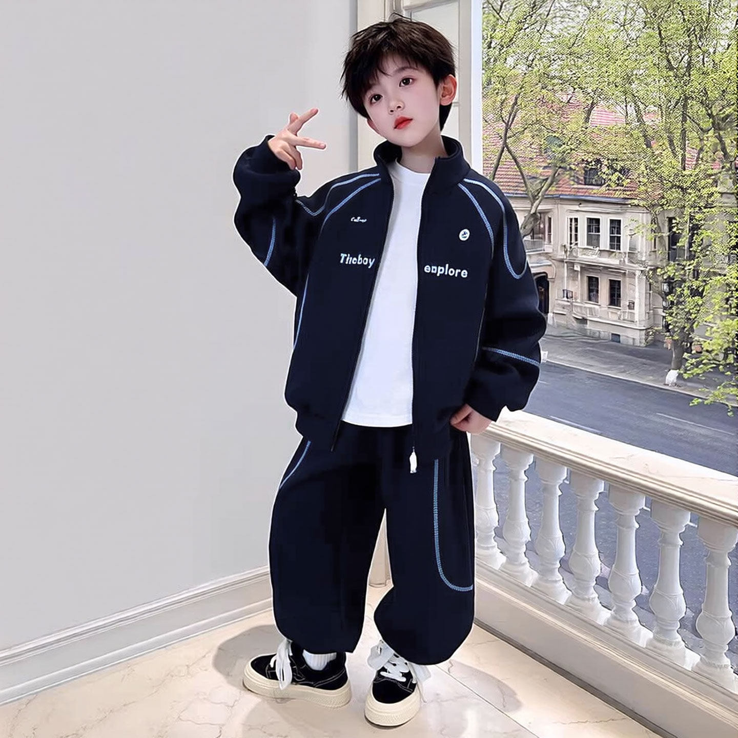 311线报网描述:百威羊2026新款春装男童运动潮酷套装