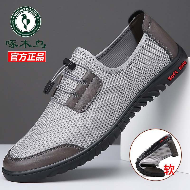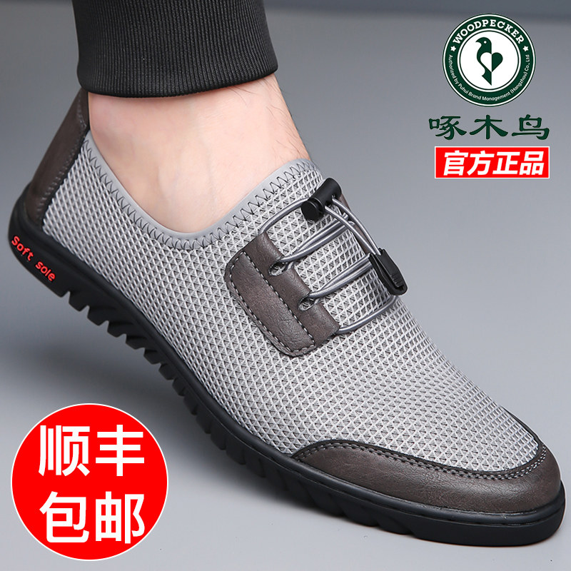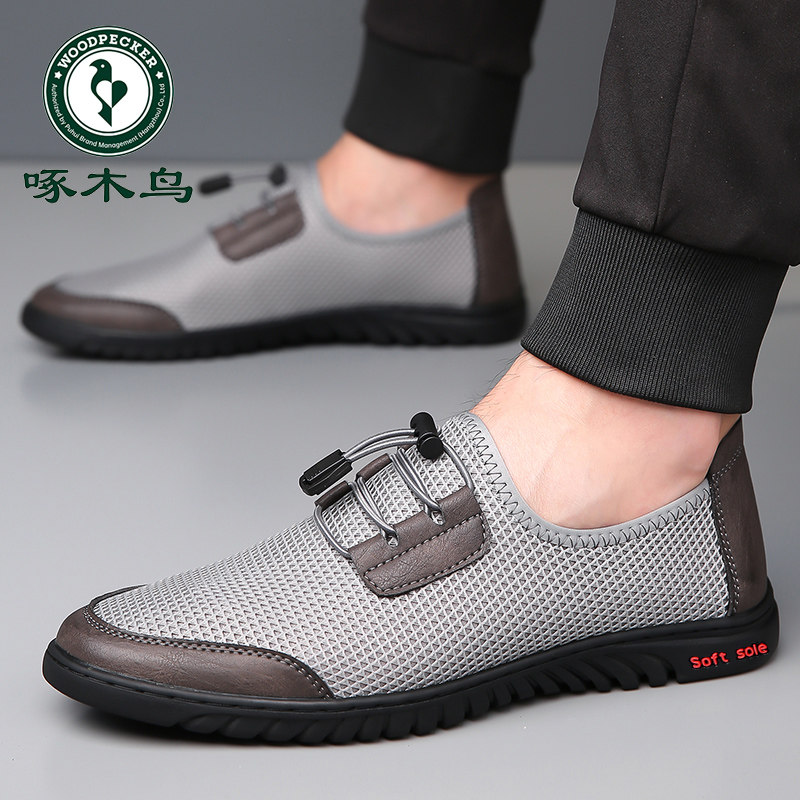 啄木鸟男鞋夏季透气网面鞋男士镂空轻便网眼鞋一脚蹬驾车休闲鞋子