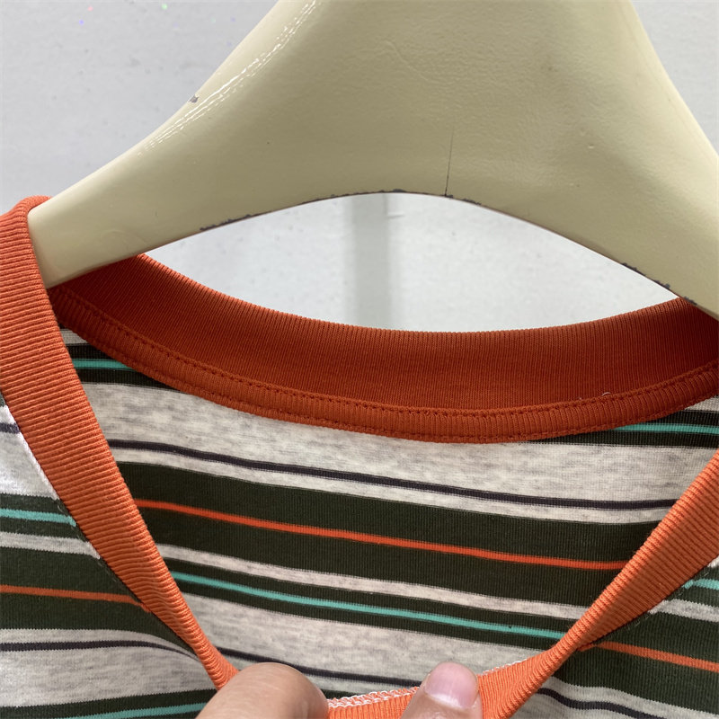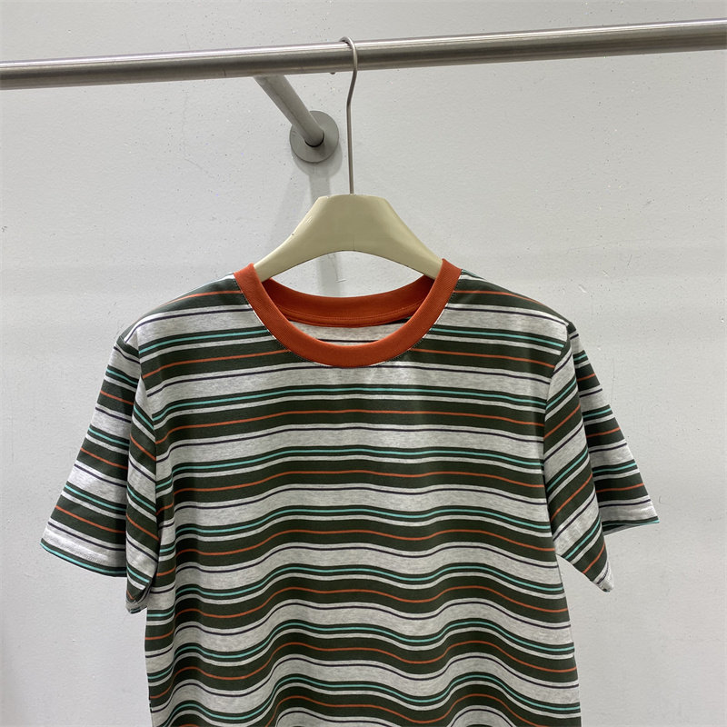欧货2026春款撞色条纹短袖T恤女新款圆领宽松百搭显瘦上衣