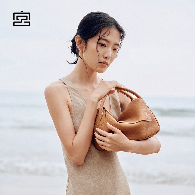 【王楚然同款】宫选元宝包头层牛皮枕头包单肩斜挎包通勤腋下包