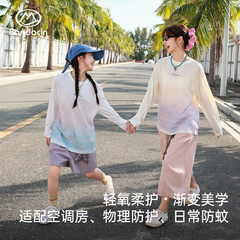 半度闲女童春夏T恤2026中大童多巴胺透气上衣女孩防蚊打底衫薄款