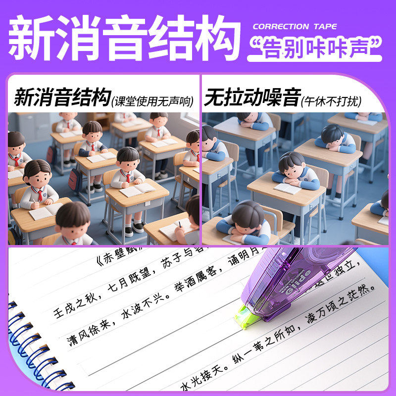 晨光巨省力静音修正带大容量小学生专用无痕款高颜值女生耐摔初中生专用顺滑易握按动涂改带学生用消音改错带