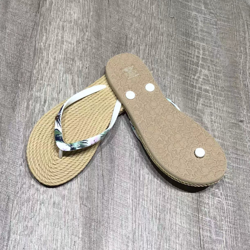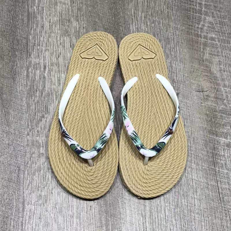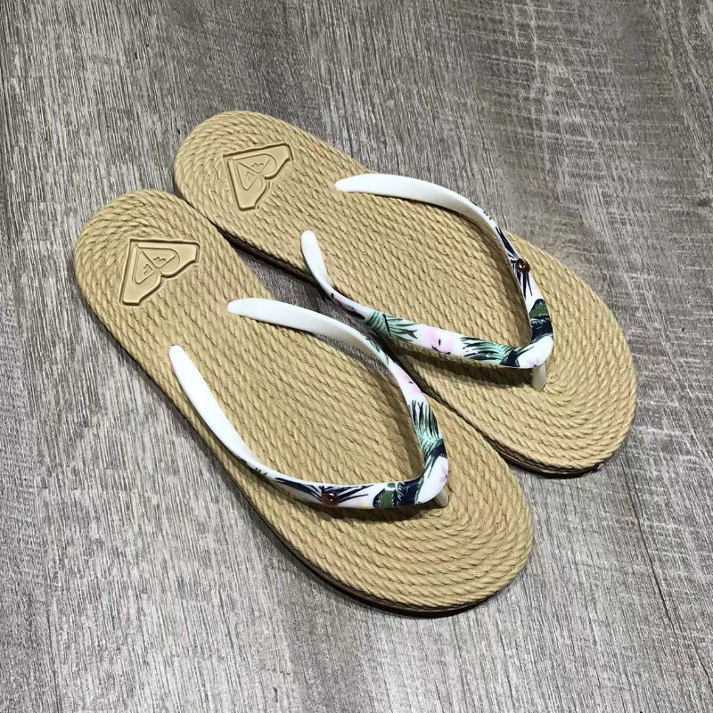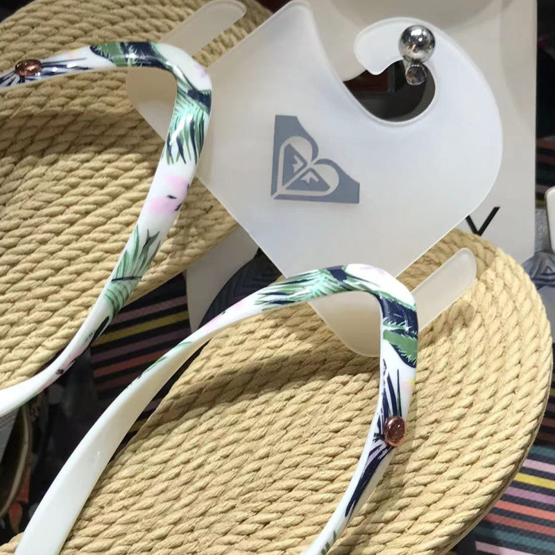 现货ROXY女士专柜2026新款防草编橡胶白绿花细鞋带速干时尚人字拖
