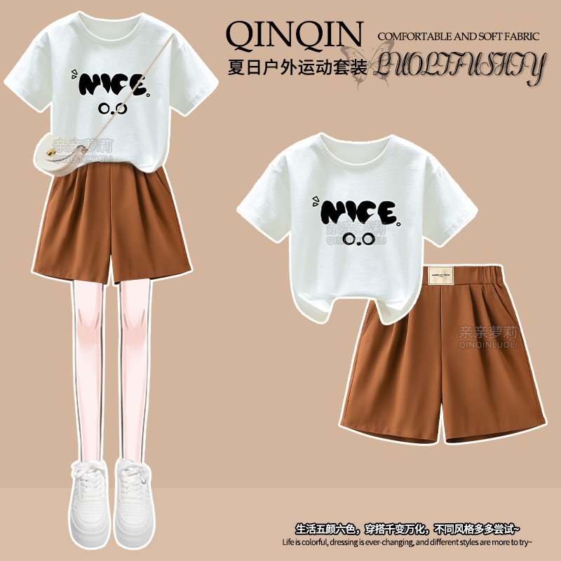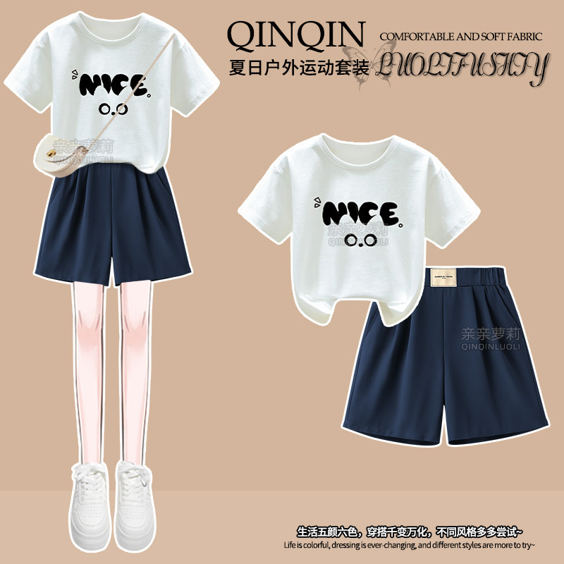 女童夏季套装2025新款中大童圆领短袖T恤学生夏装运动短裤两件套