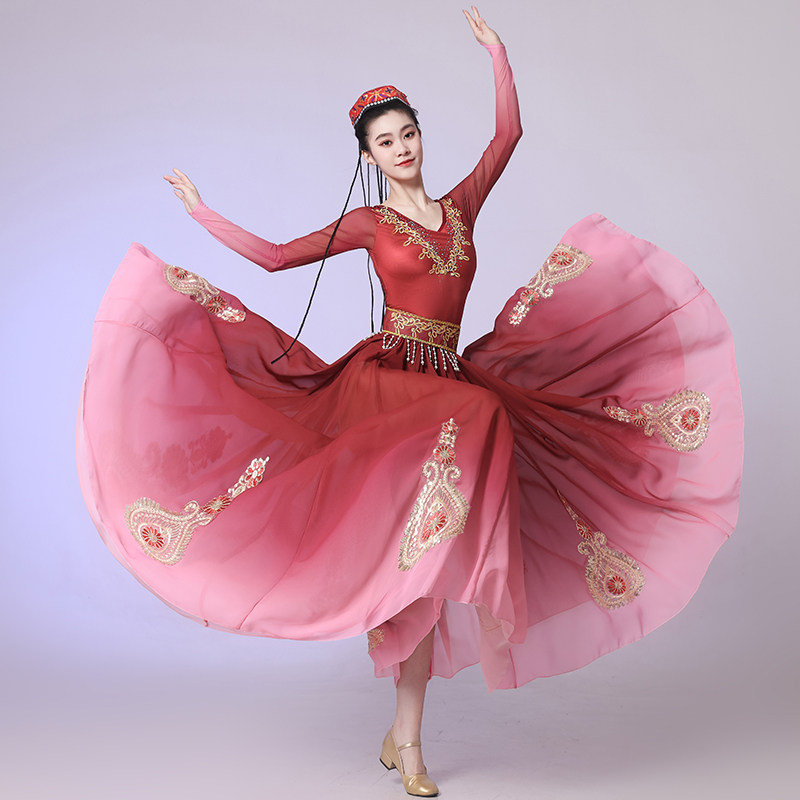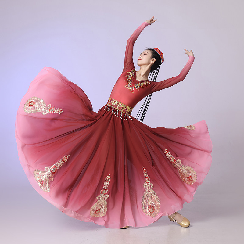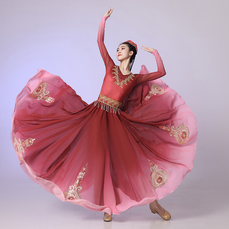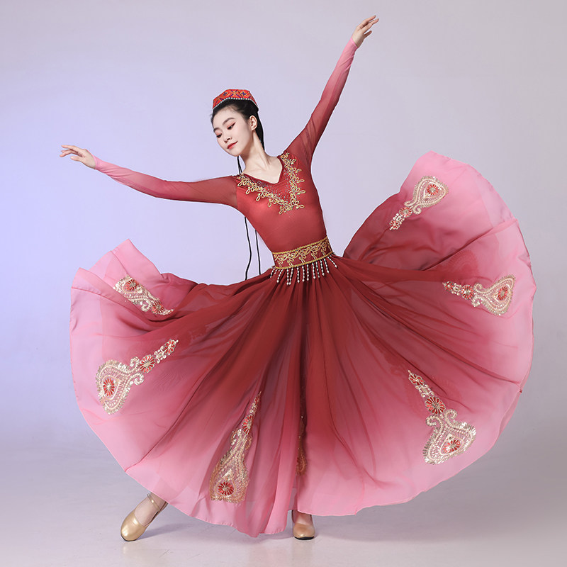 新疆舞蹈演出服成人女新款开场舞维吾族大摆裙练习裙艺考民族服装