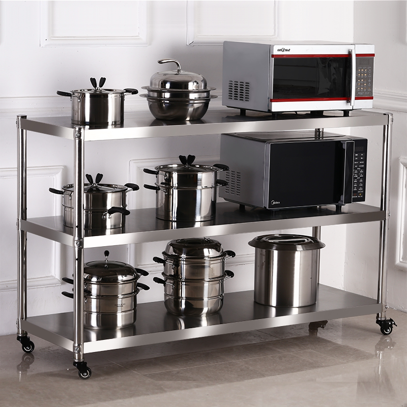不锈钢厨房置物架可移动多层收纳仓储货架家用放锅碗架子带万向轮