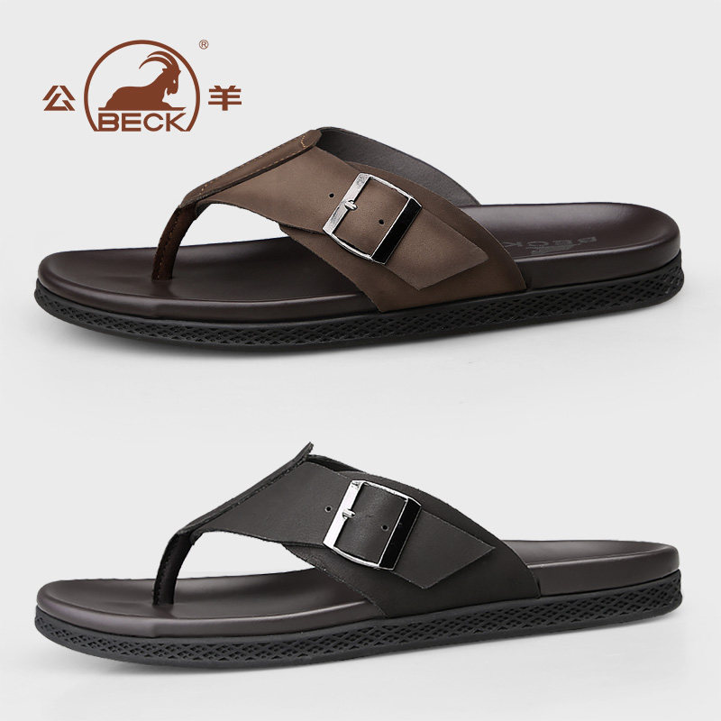 公羊拖鞋男夏季外穿人字拖2026新款真皮男款夏天夹趾夏天牛皮凉鞋