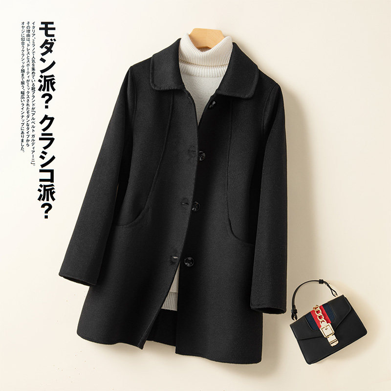 2024秋冬双面羊绒大衣女韩系娃娃领高端减龄毛呢外套小个子中长款