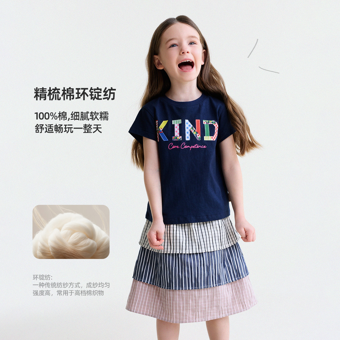 宝宝夏季百搭字母印花T恤允儿妈女童2026新款纯棉短袖儿童上衣潮