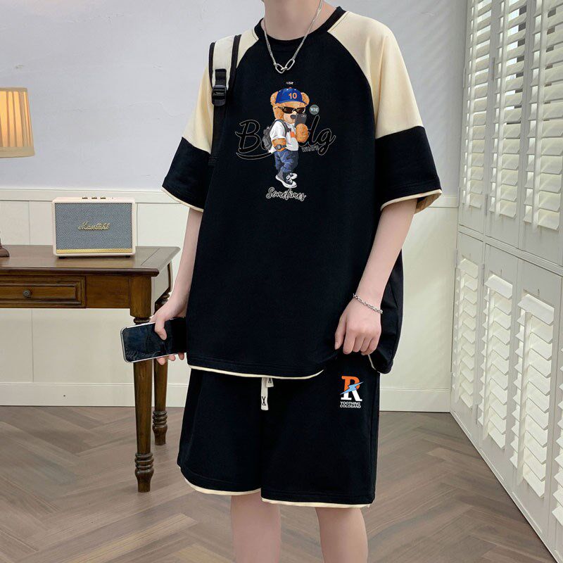 青少年运动套装大男孩初中学生纯棉短袖t恤潮流帅气大童百搭夏装