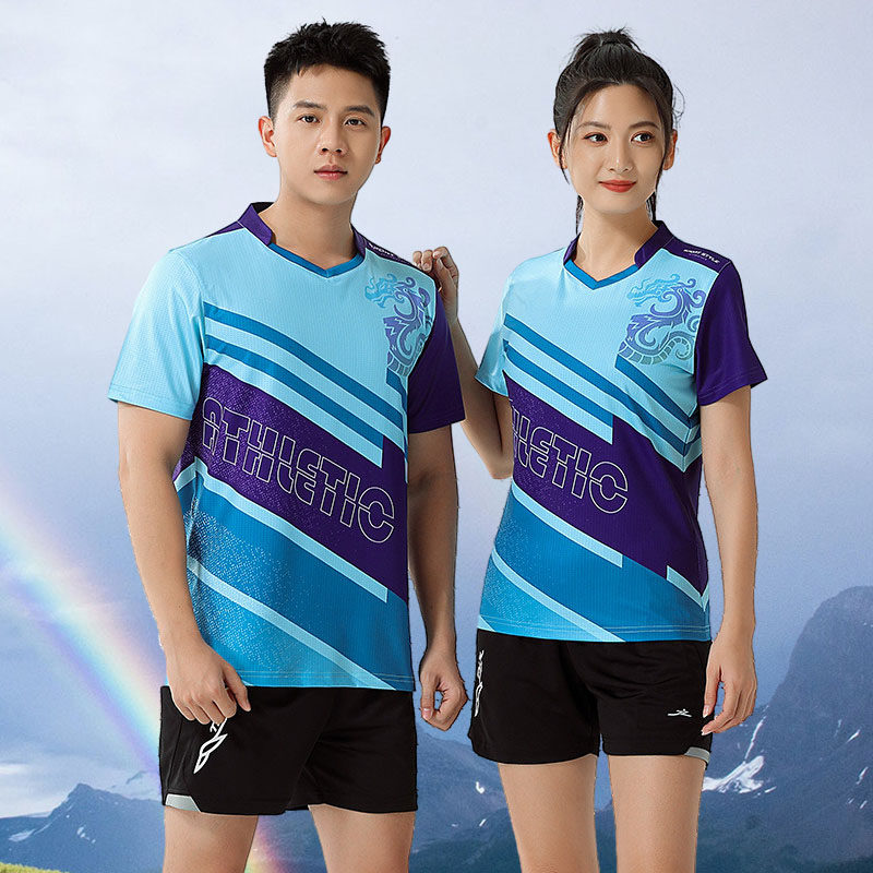羽毛球服套装速干透气吸汗上衣学生教练训练红蓝短袖男女乒乓球衣