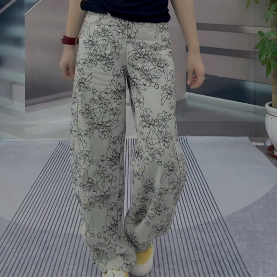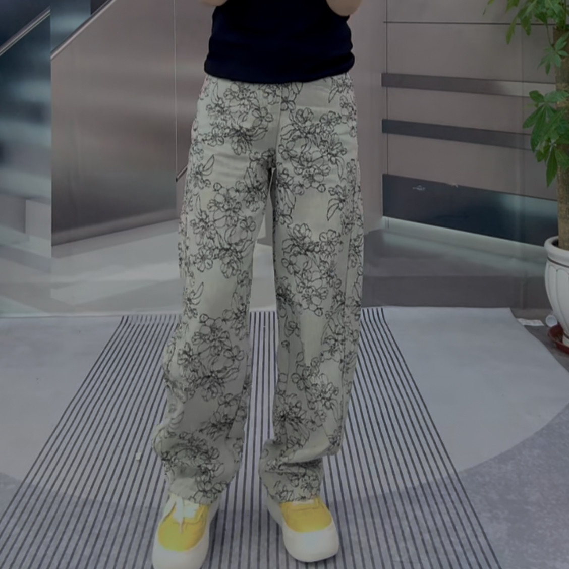 2025欧货爆款裤子灰色女款花牛仔裤浅色窄版阔腿裤宽松高腰弯刀裤