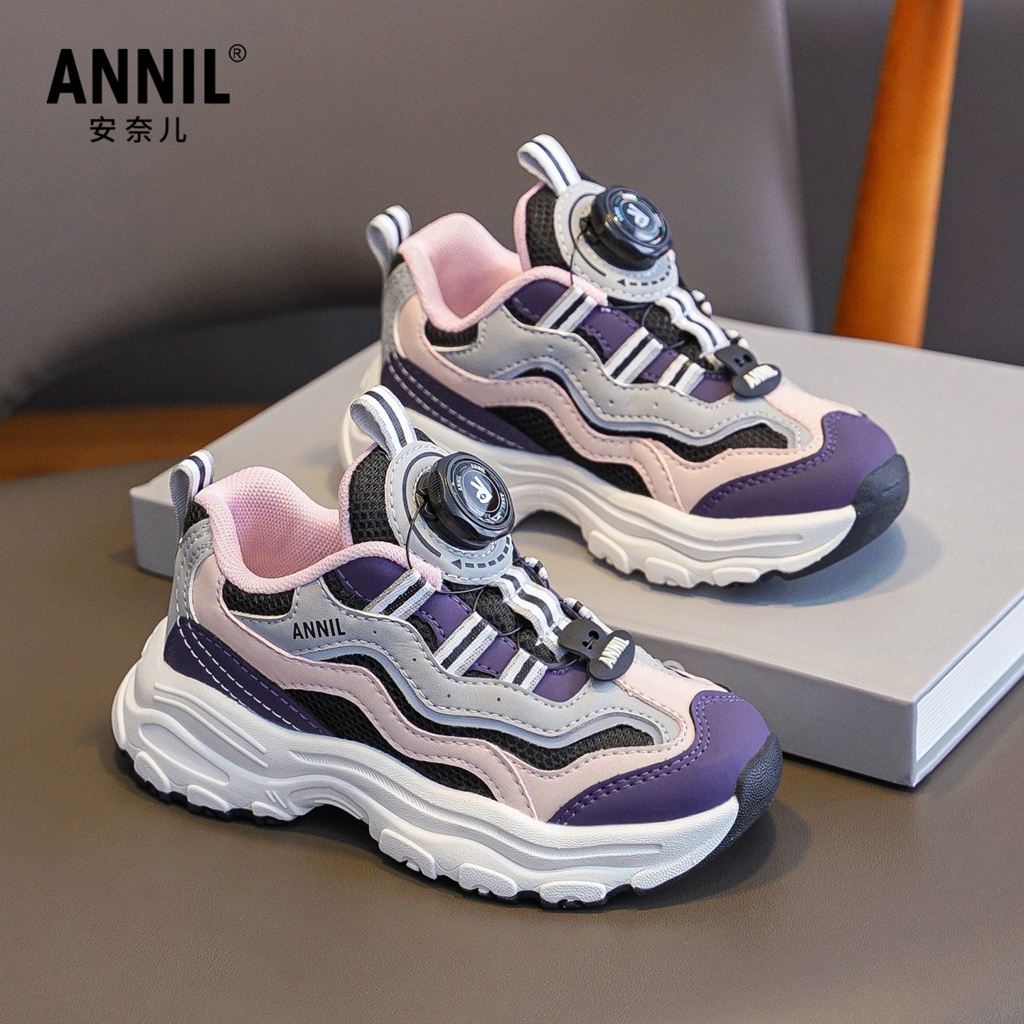 安奈儿女童运动鞋春秋季2026新款网面透气儿童老爹鞋今年流行爆款