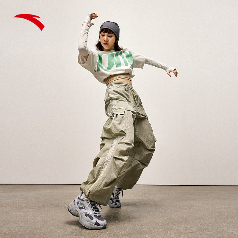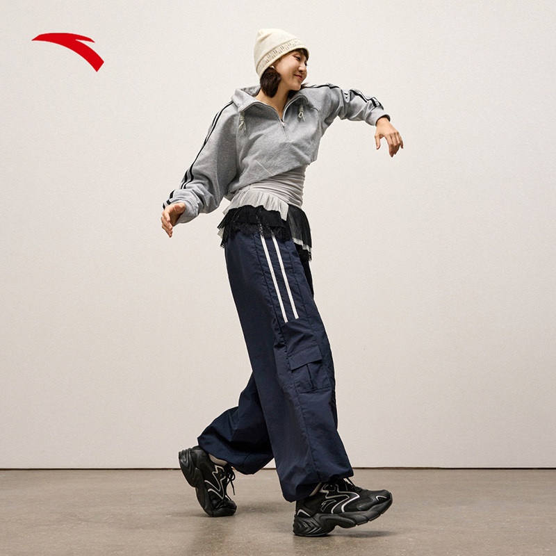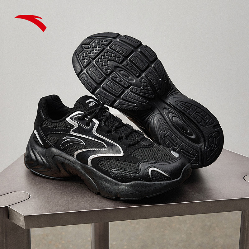 安踏溯年丨复古厚底增高跑步鞋女夏季潮流休闲黑色运动鞋百搭女鞋