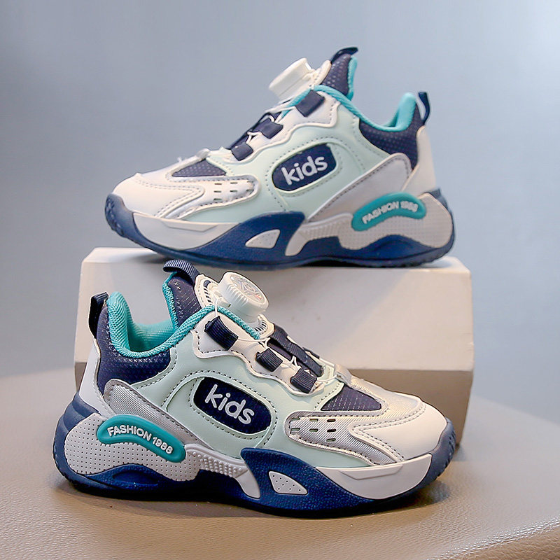 儿童运动鞋软底休闲鞋2026春秋新款男童跑步鞋旋转纽扣女童老爹鞋
