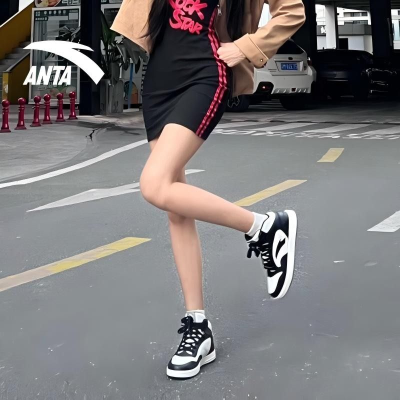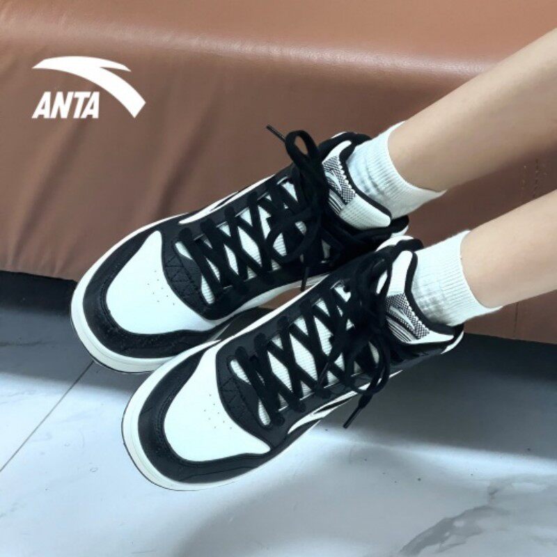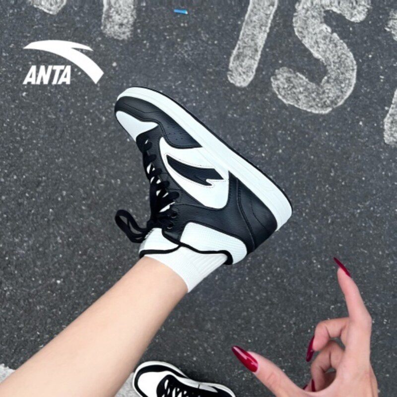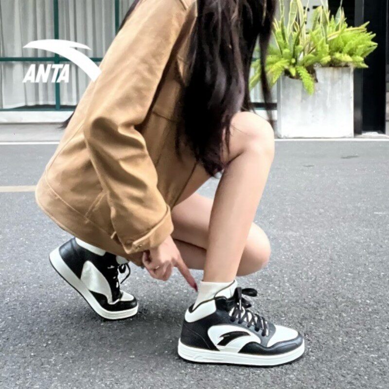 安踏高帮板鞋女鞋夏季新款复古百搭轻便运动鞋黑白熊猫软底休闲鞋