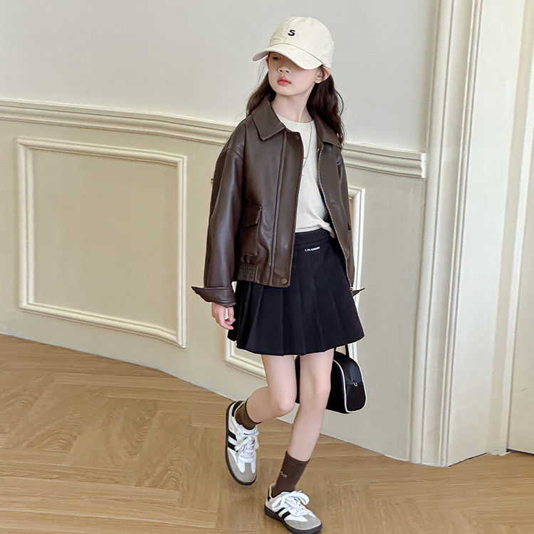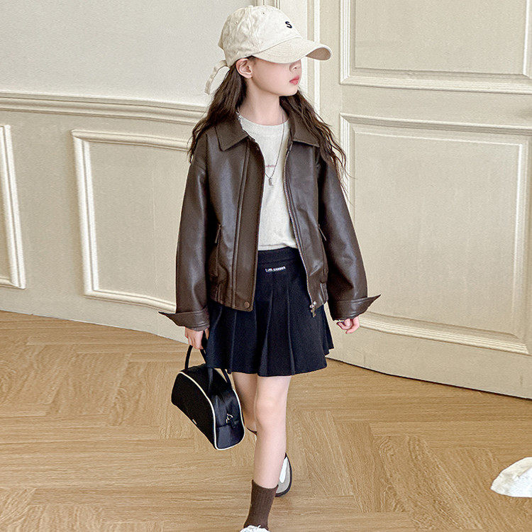 女童皮衣外套春秋2026新款中大童韩版上衣时髦春装短款儿童夹克潮