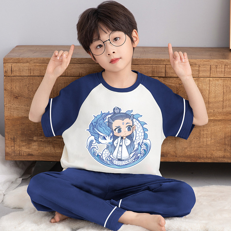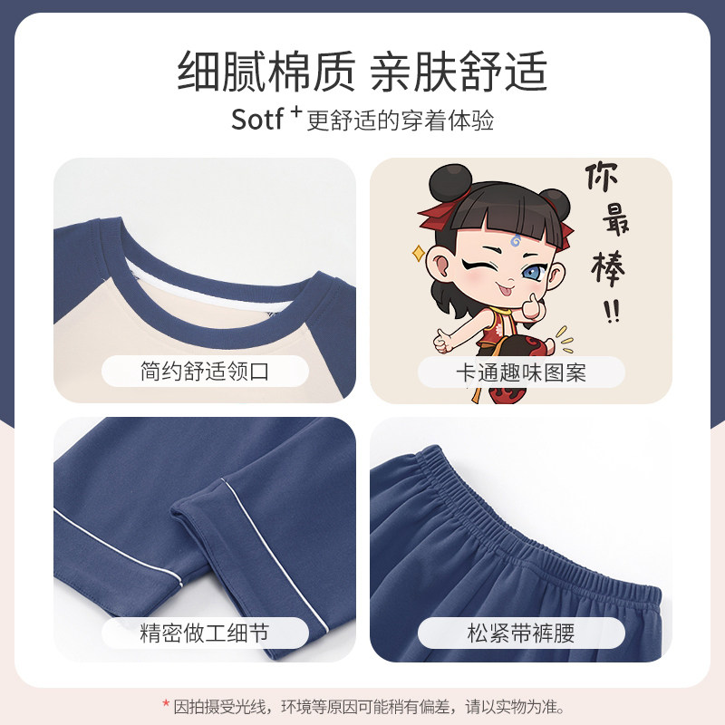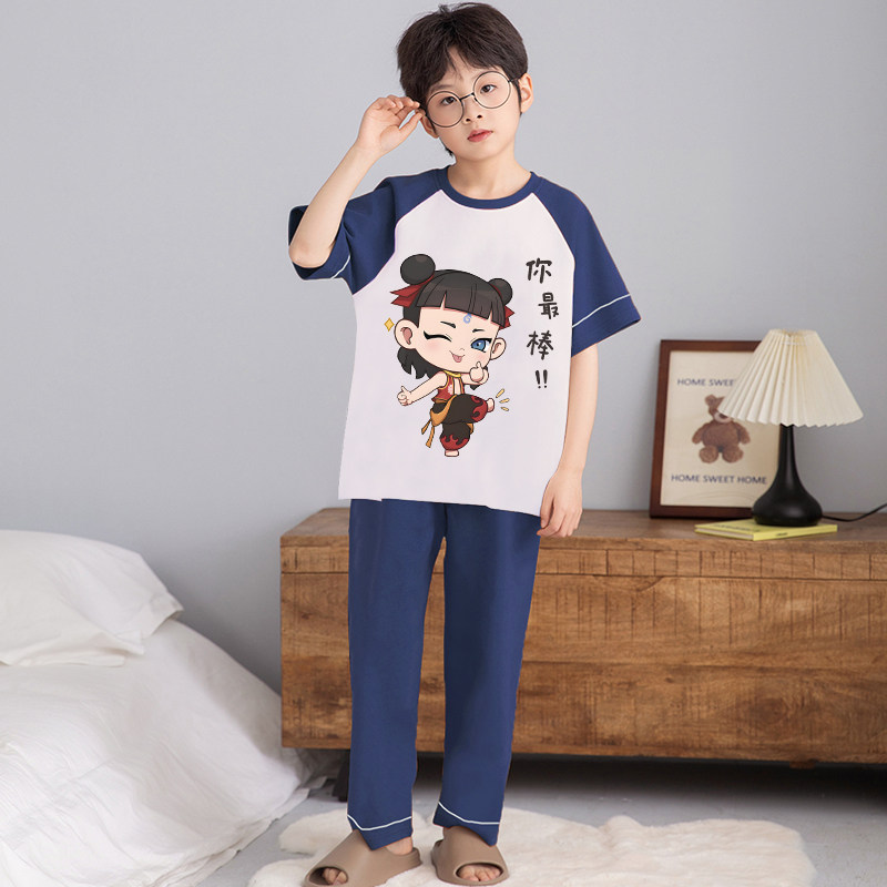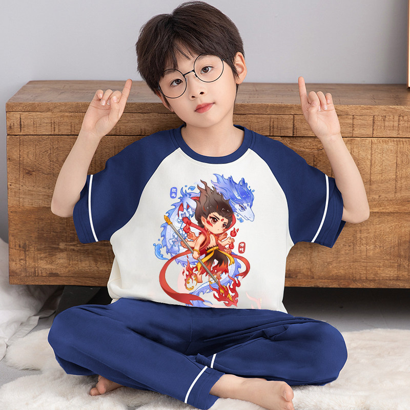 哪咤儿童睡衣男孩夏季纯棉短袖长裤男童青少年卡通家居服两件套装