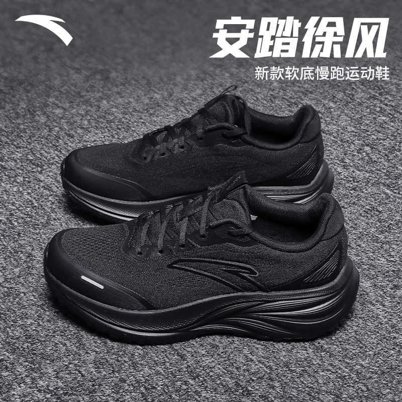安踏黑色跑步鞋男款学生2026夏季新款舒适鞋子柔软慢跑运动鞋休闲
