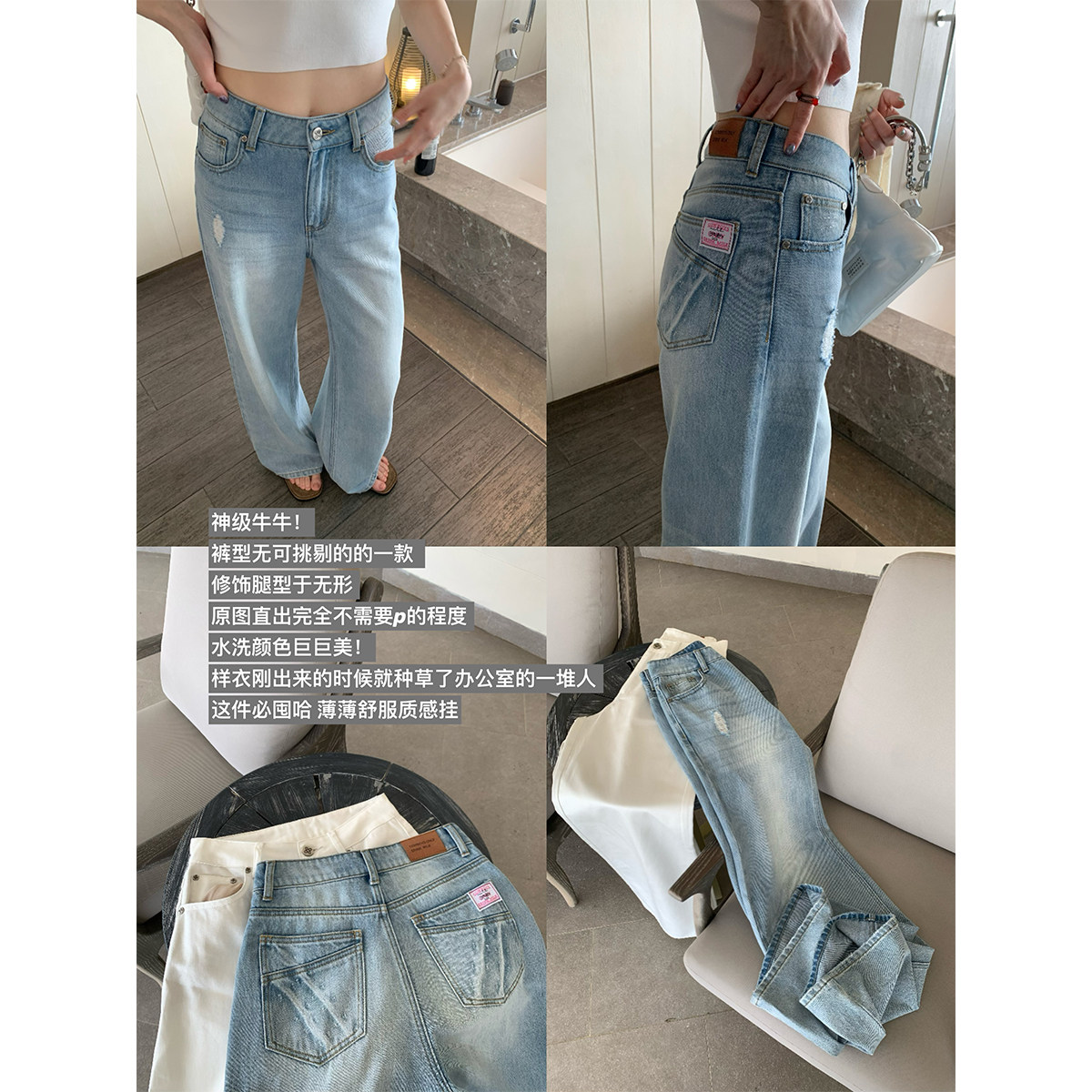 神级牛牛!夏日浅牛系 天丝棉高质感直筒白色牛仔裤 轻薄休闲裤
