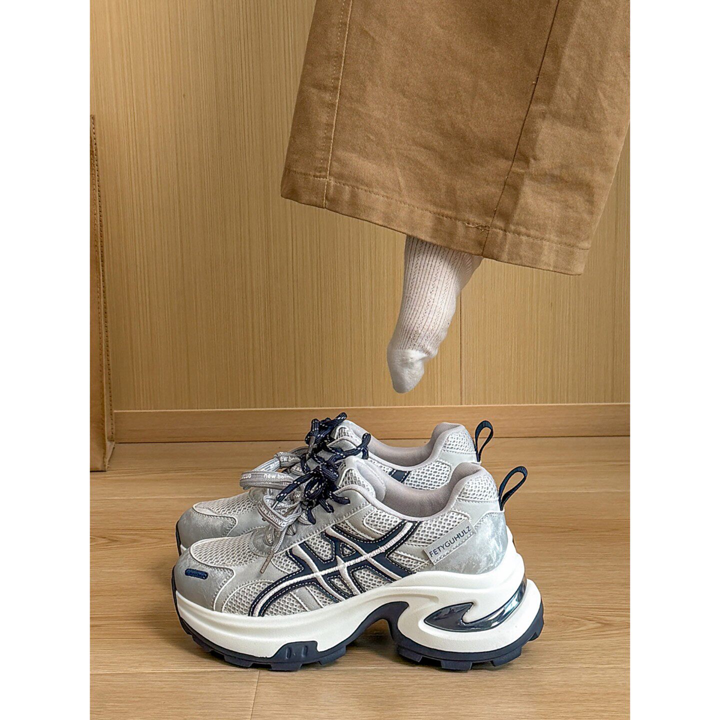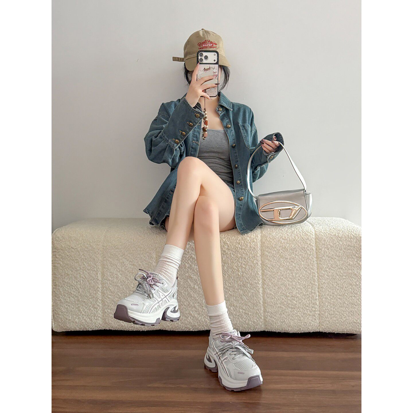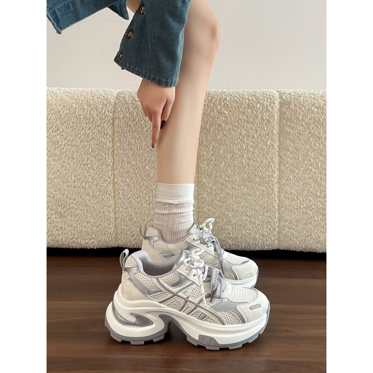 紫色单网透气厚底老爹鞋女款2026新款夏季增高百搭休闲小白运动鞋