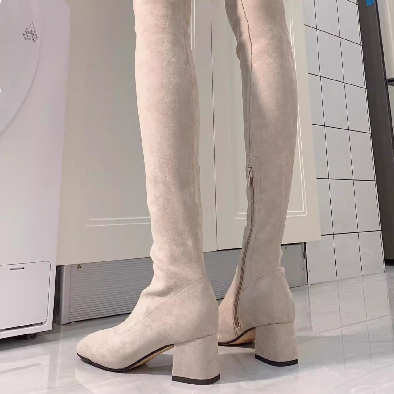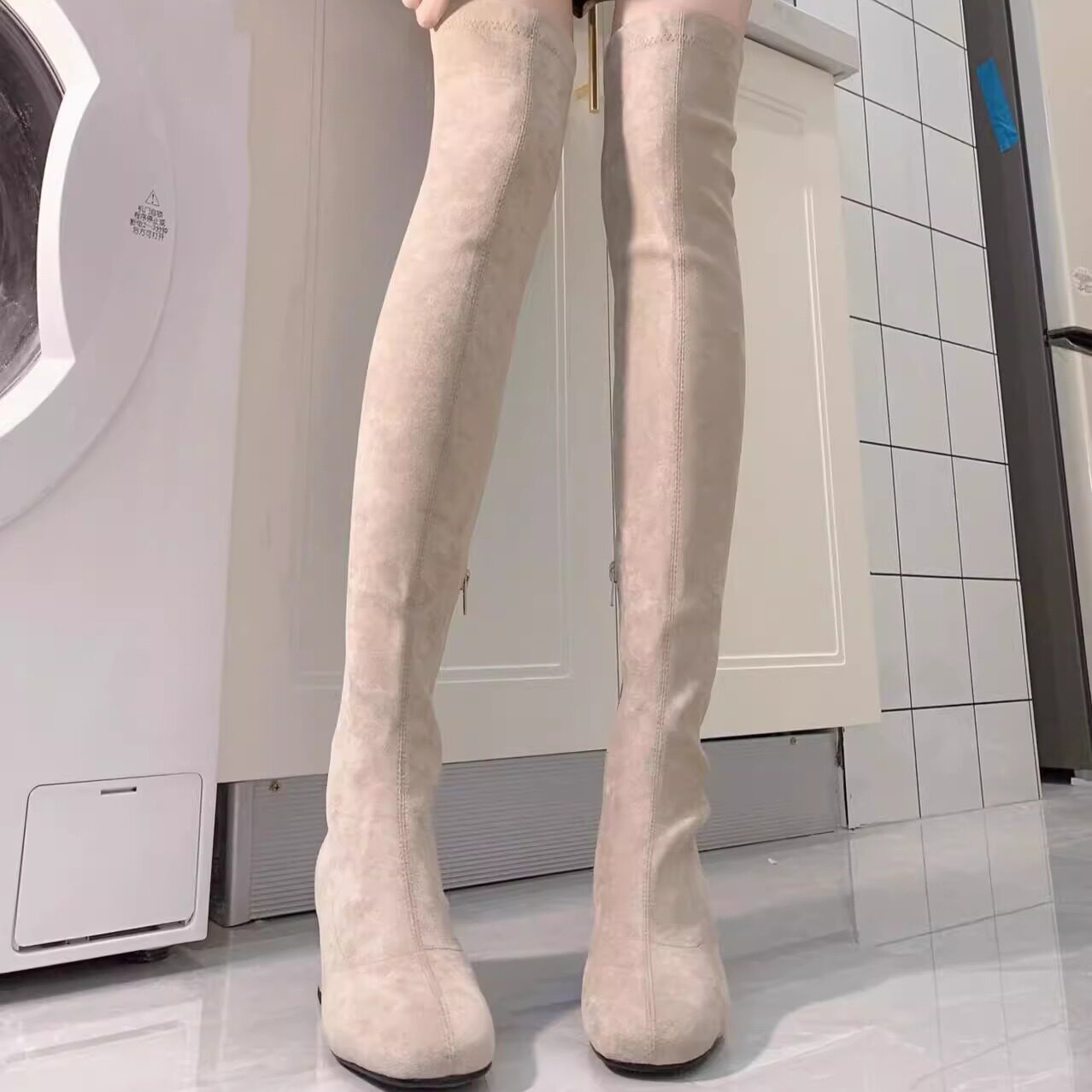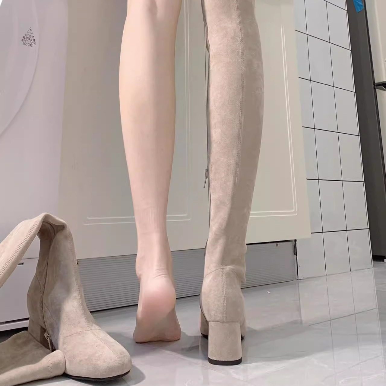 过膝长靴女款2026新款春夏方头粗高跟爆款鞋子瘦瘦靴高筒弹力靴子