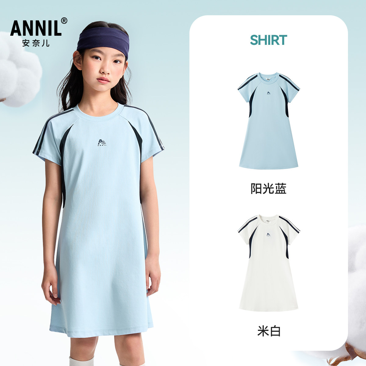 【凉感运动裙】安奈儿童装女童短袖连衣裙子2025夏网球亲肤透气