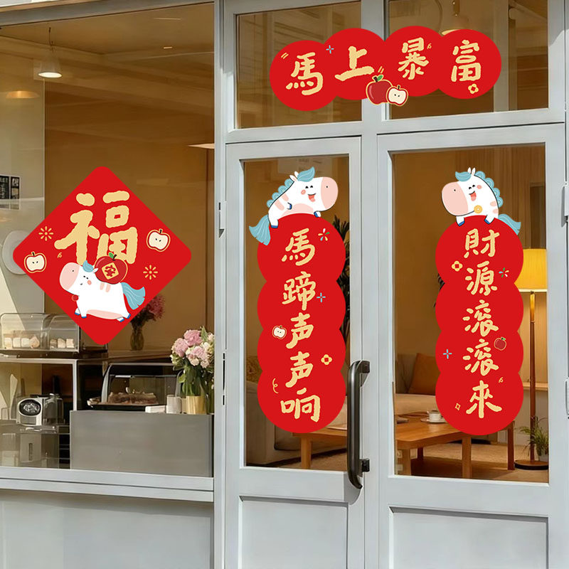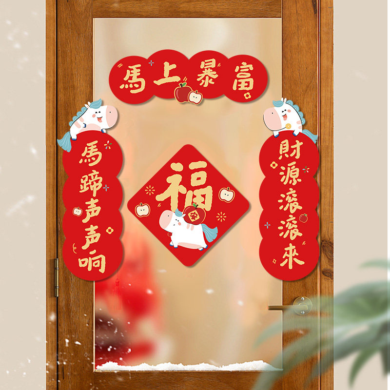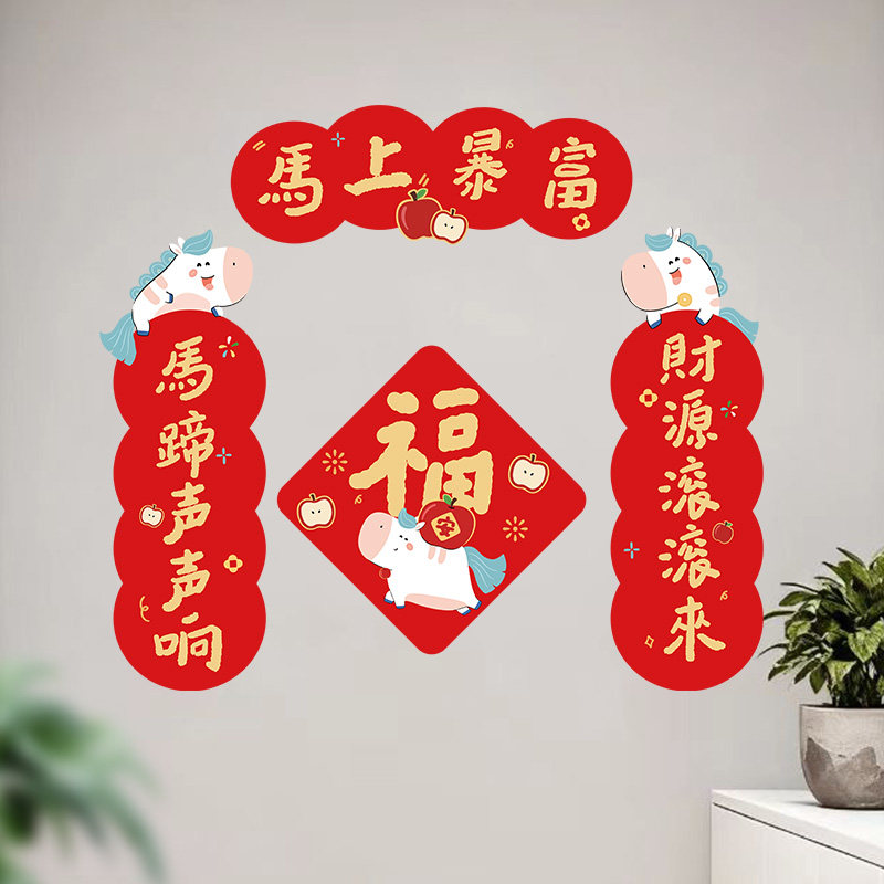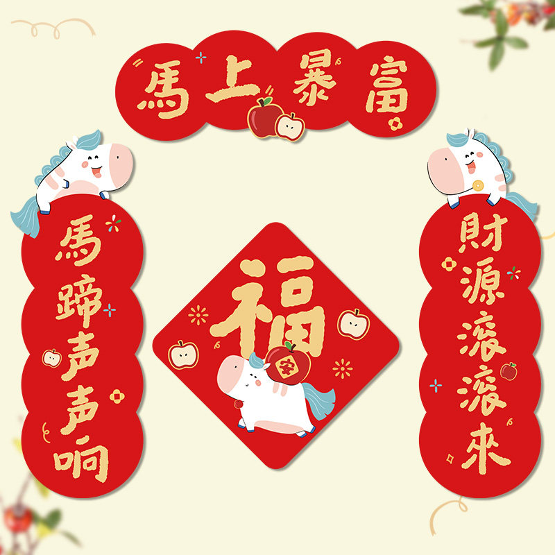 2026马年小春联对联装饰卡通门贴创意新款福字春节新年可爱过年