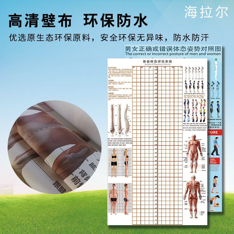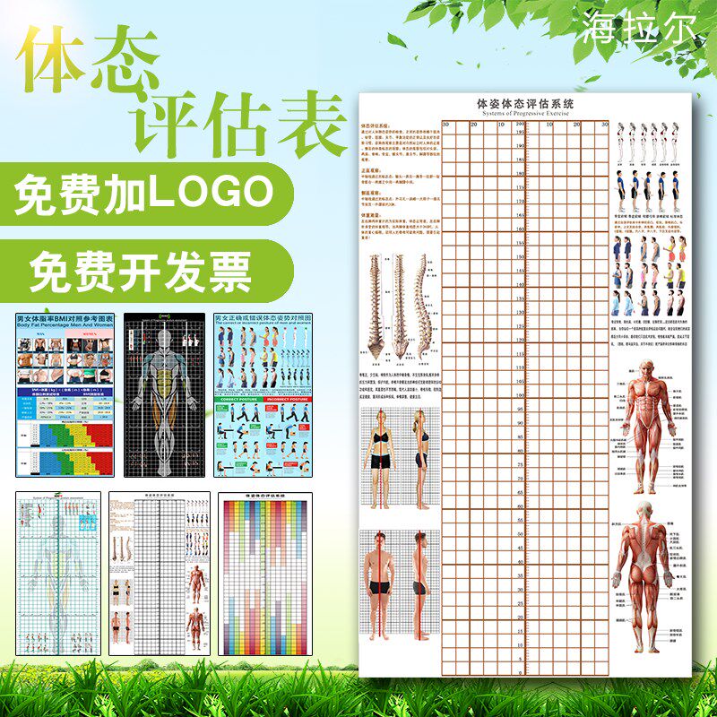 现货挂式体态评估表私教评估墙图养生馆健身馆体测评估图可加logo