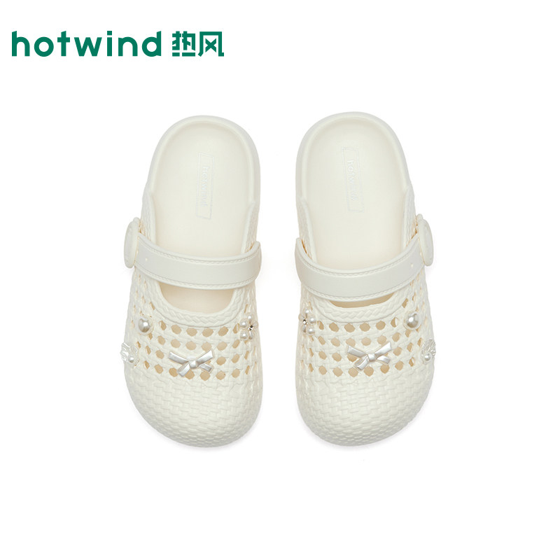 热风米色洞洞鞋女鞋2026年春季新款通勤百搭凉拖户外凉鞋休闲拖鞋