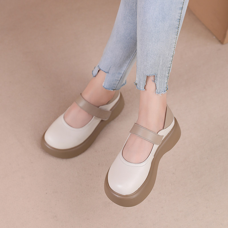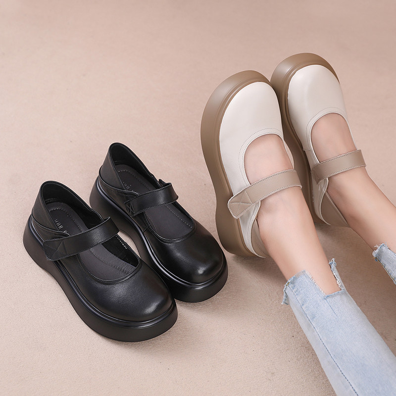 真皮头层牛皮不累脚厚底玛丽珍女鞋2026新款春季单鞋软底休闲皮鞋