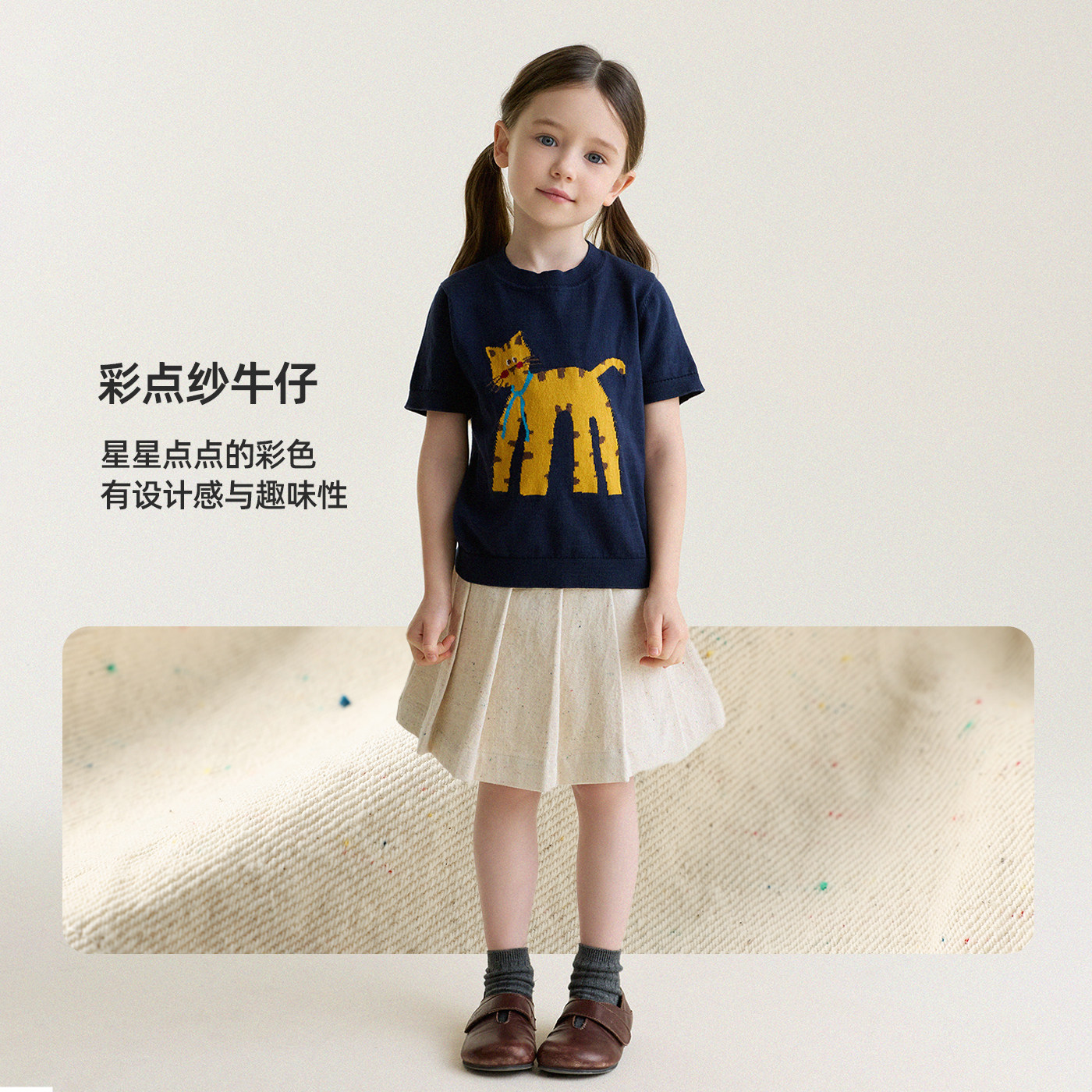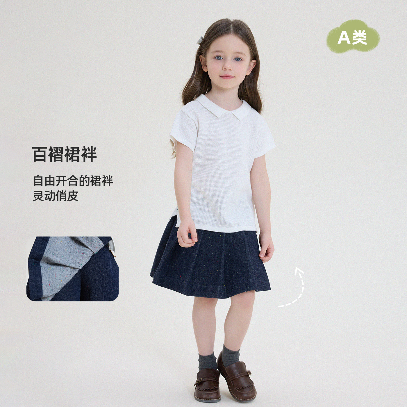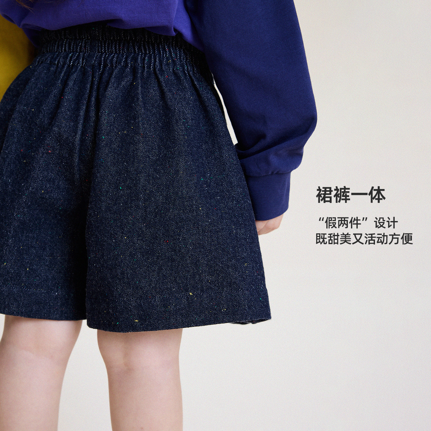 允儿妈女童2026春夏彩点纱假两件牛仔百褶裤裙儿童新款短裤裤子潮