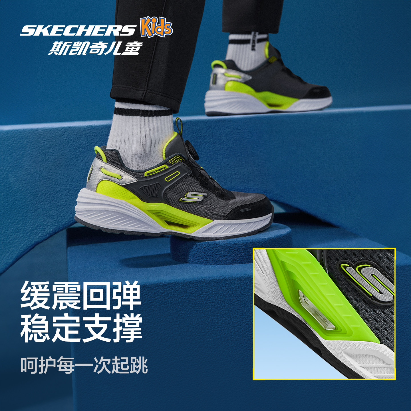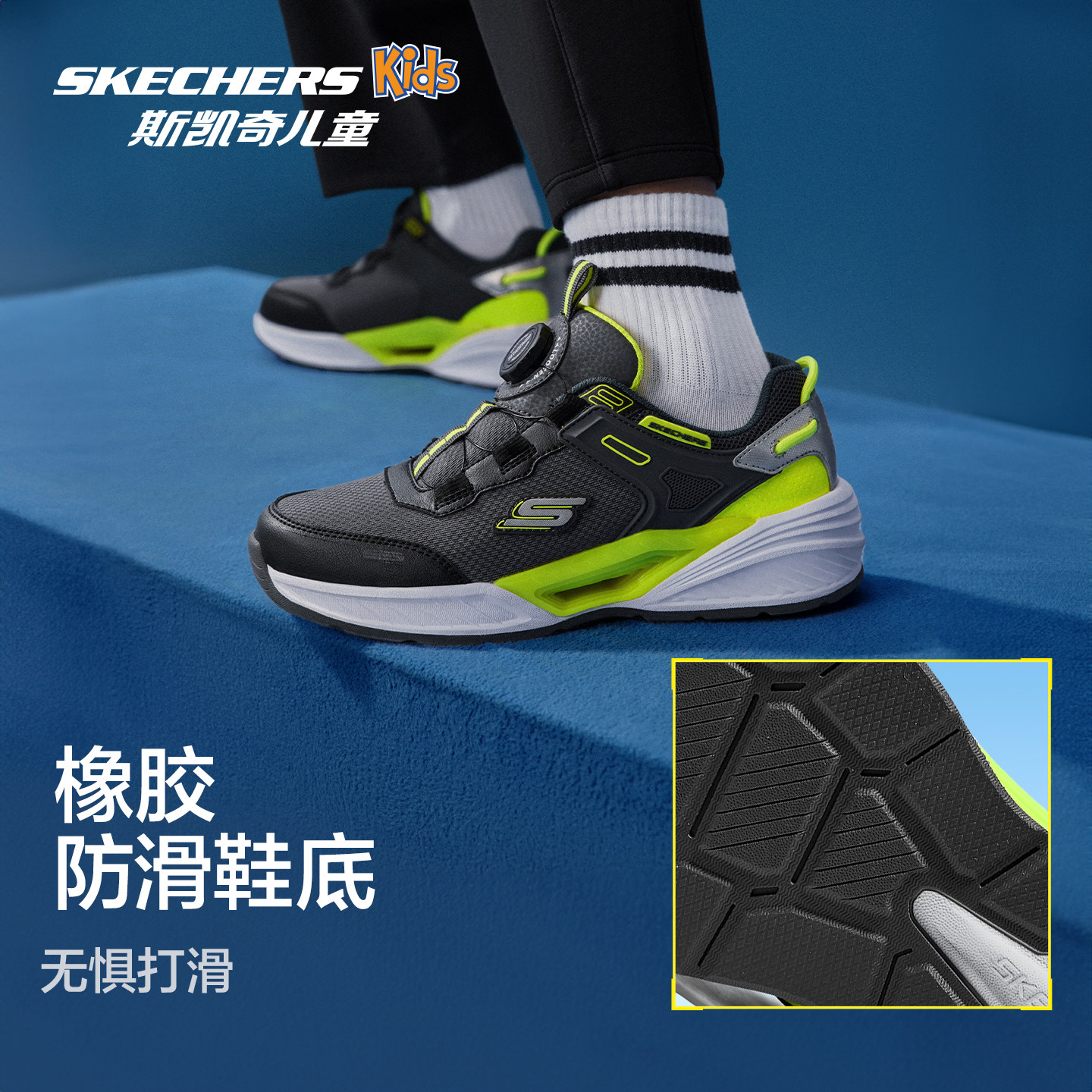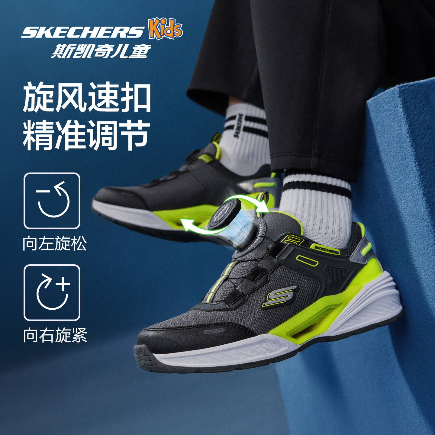 Skechers斯凯奇儿童风豹体训跑鞋男童舒适休闲鞋中大童旋钮运动鞋