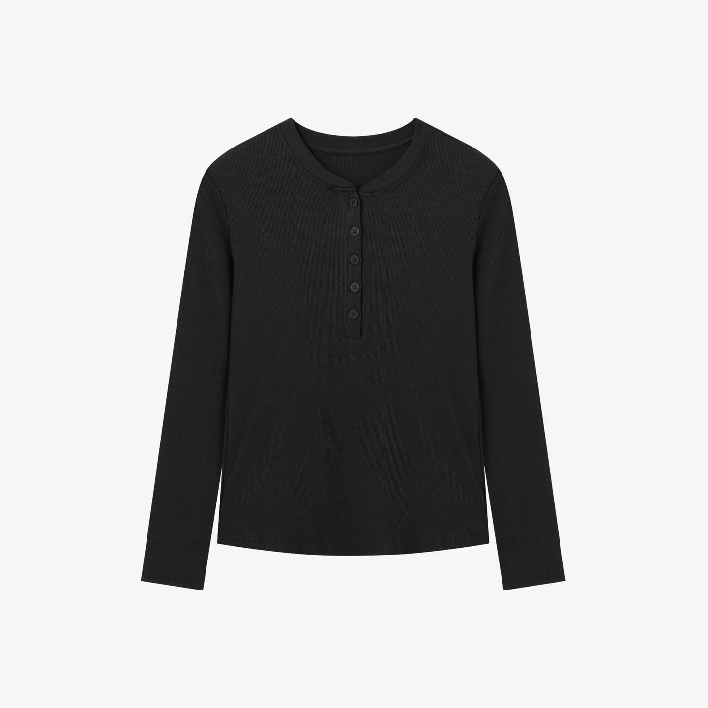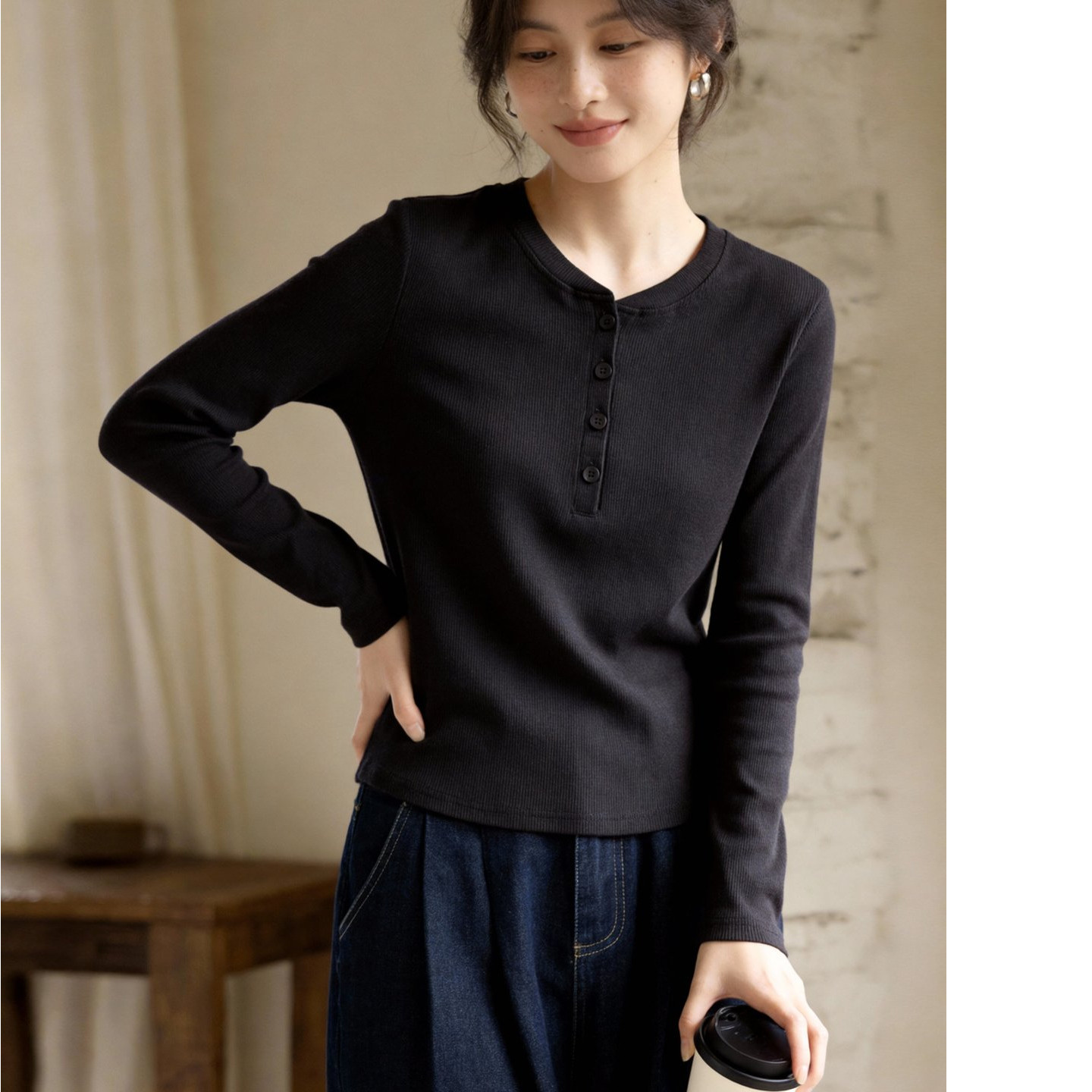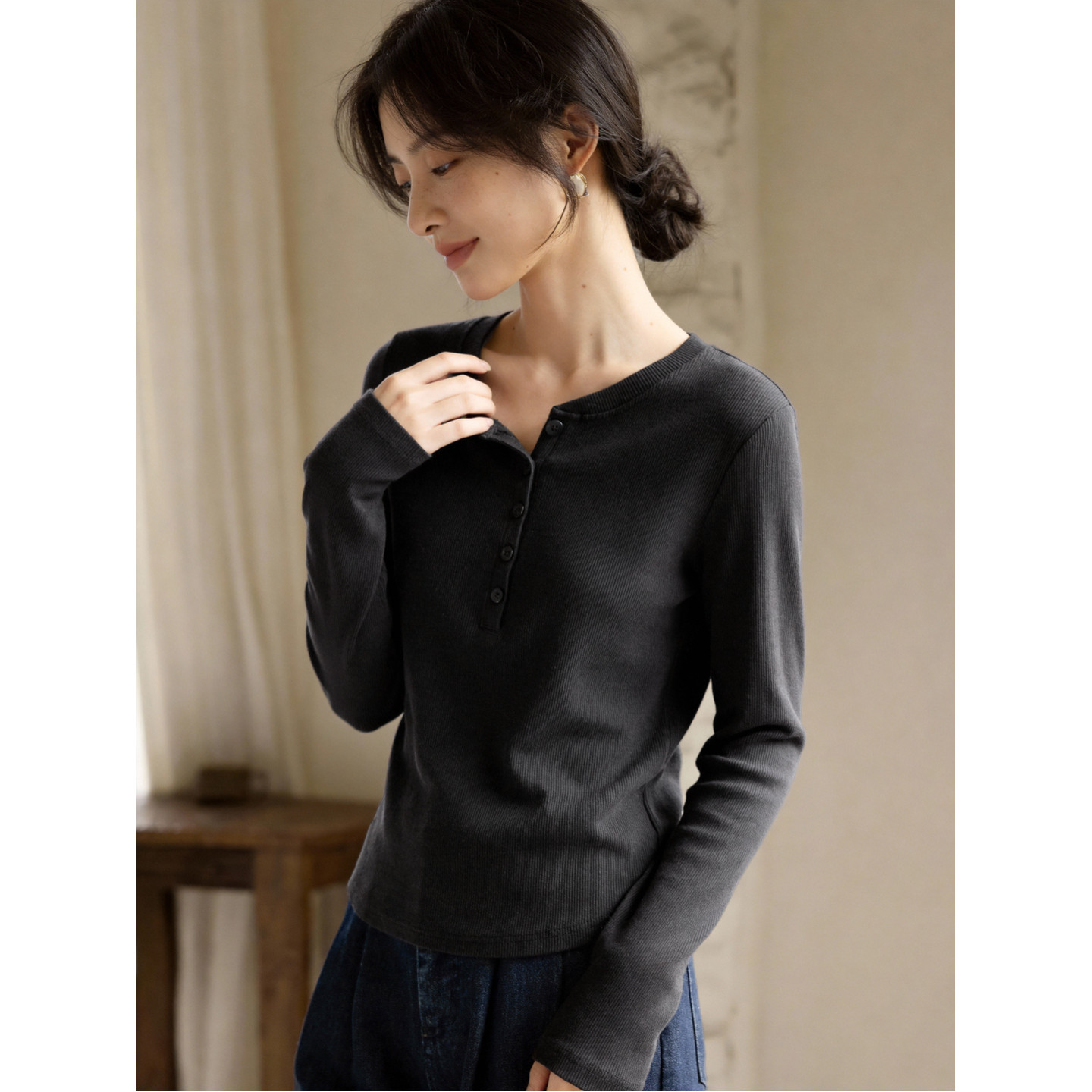 百家好灰色正肩长袖t恤女士2026春季新款修身显瘦内搭打底衫上衣