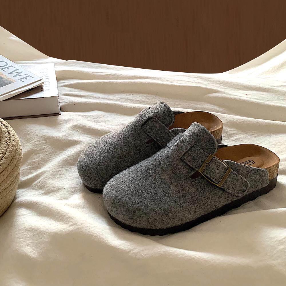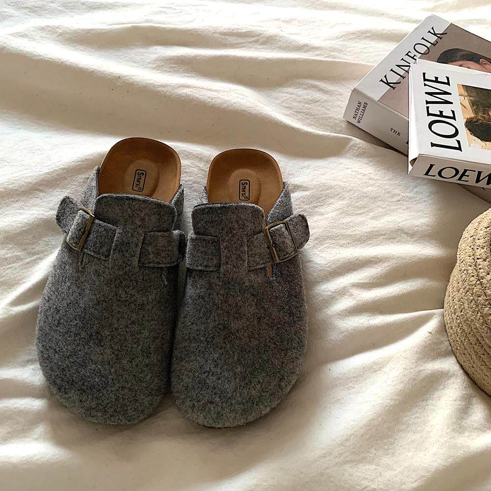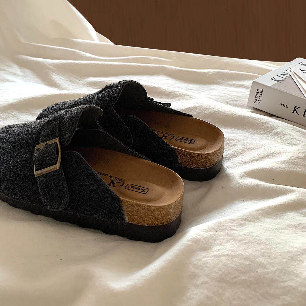 ins韩国炭灰色厚底勃肯鞋女鞋2025新款韩版一脚蹬懒人包头半拖鞋